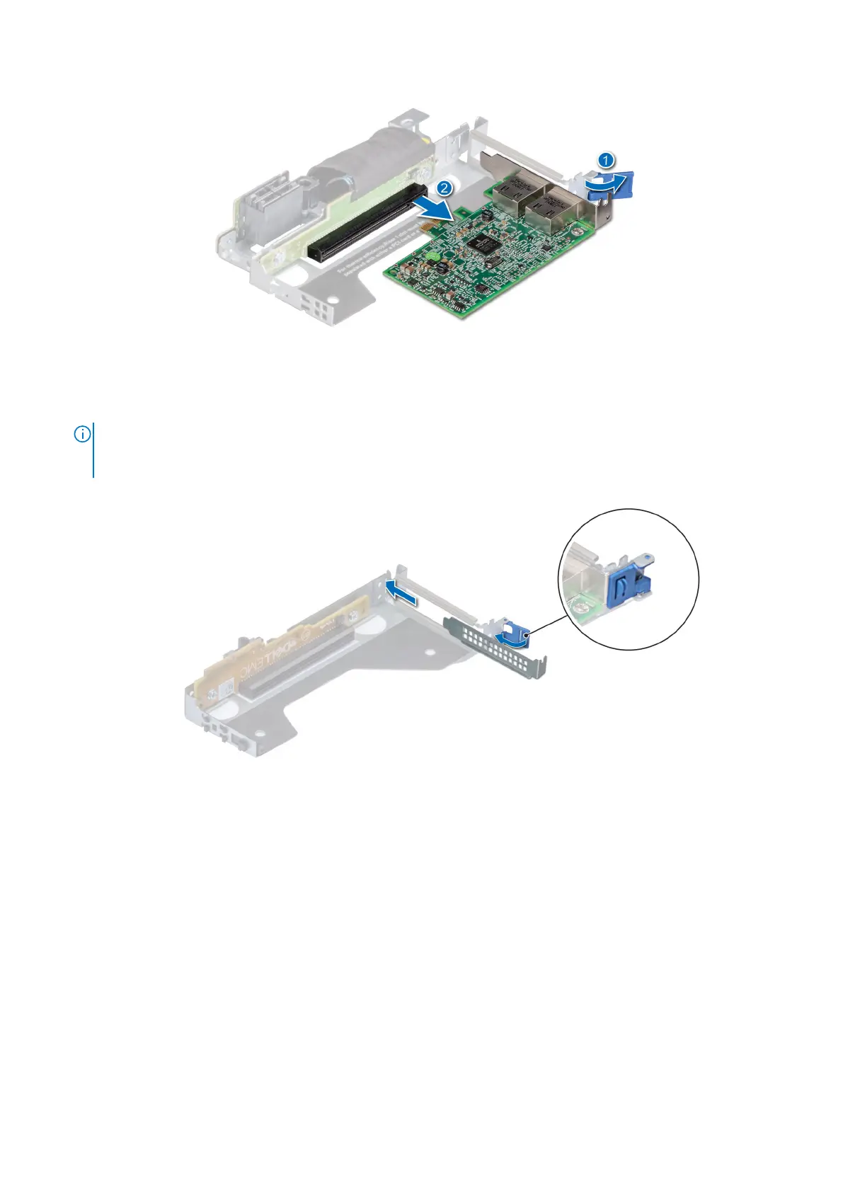 Figure 59. Removing an expansion card from the low profile right riser