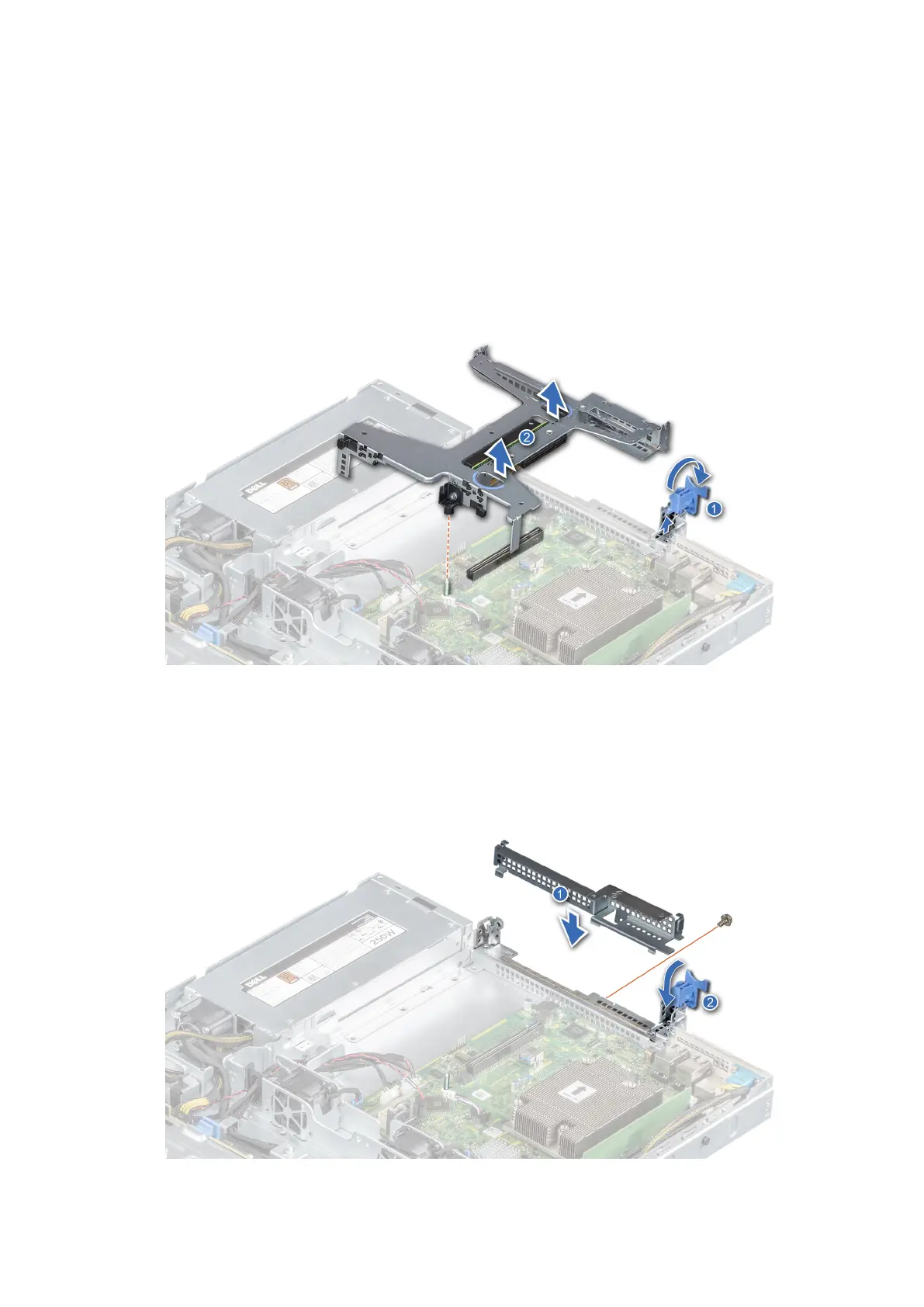 2. Holding the blue touch points, lift the expansion card riser out of the system.