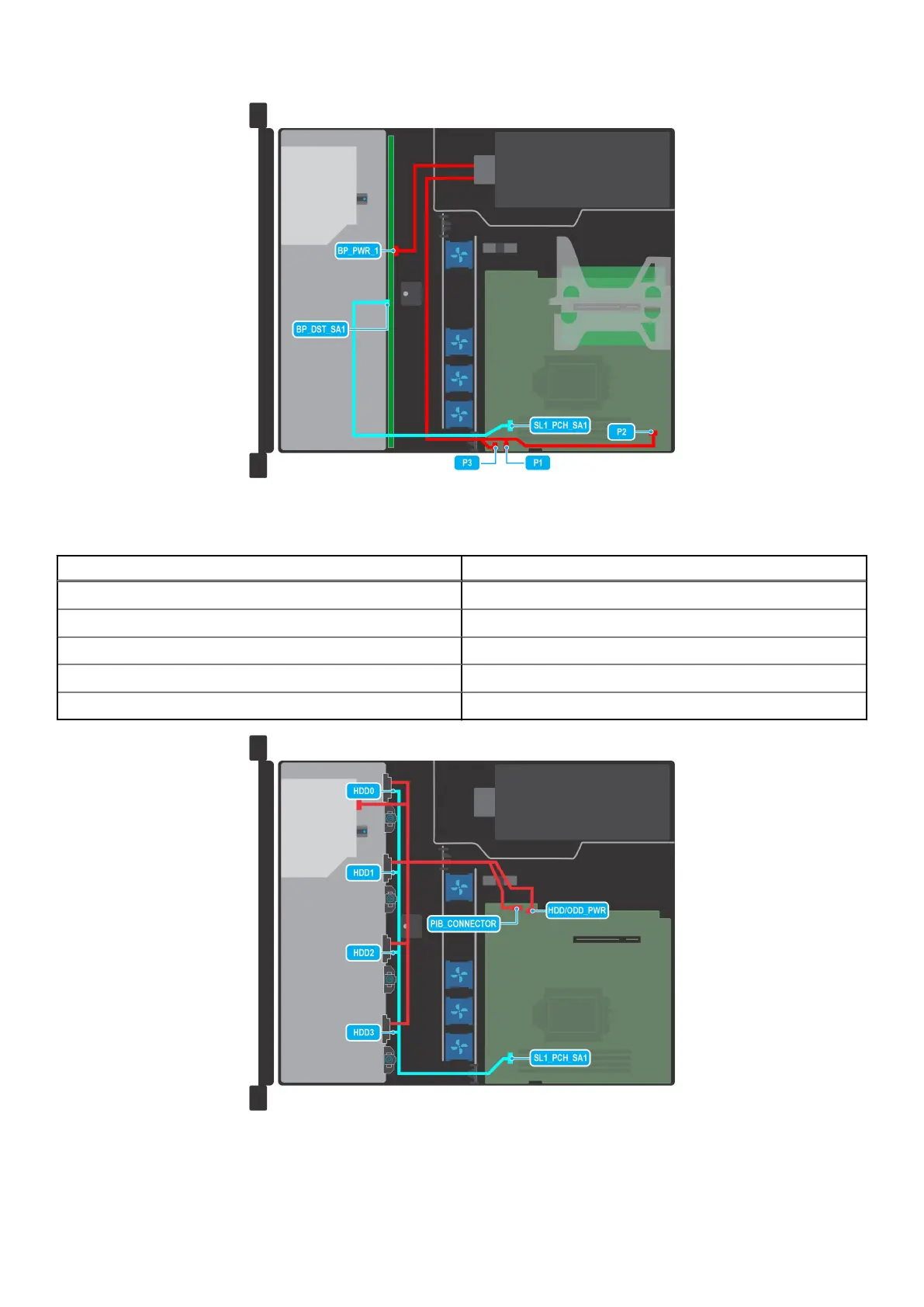 Table 12. Cable routing - 4 x 3.5-inch backplane configuration with onboard SATA and PSU (Bronze)