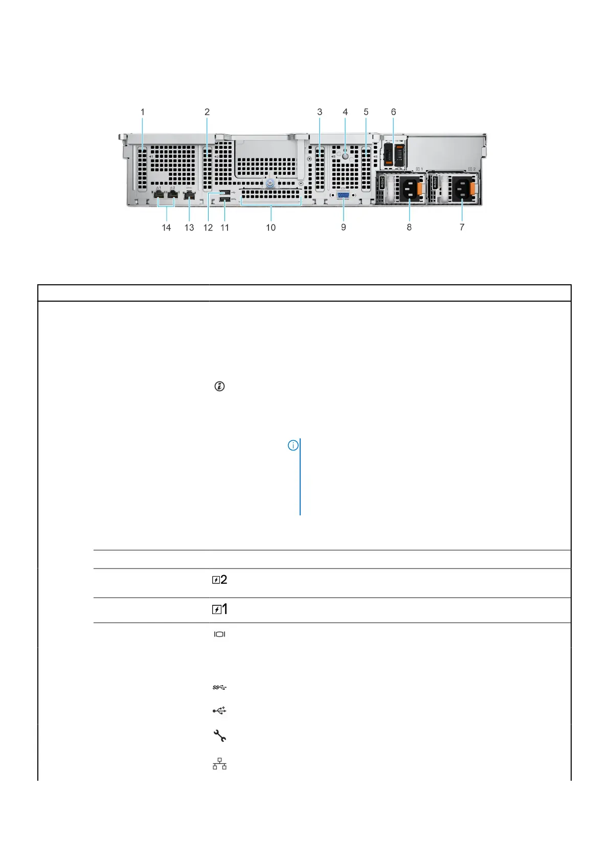 13 iDRAC dedicated port Enables you to remotely access iDRAC. For more information, see