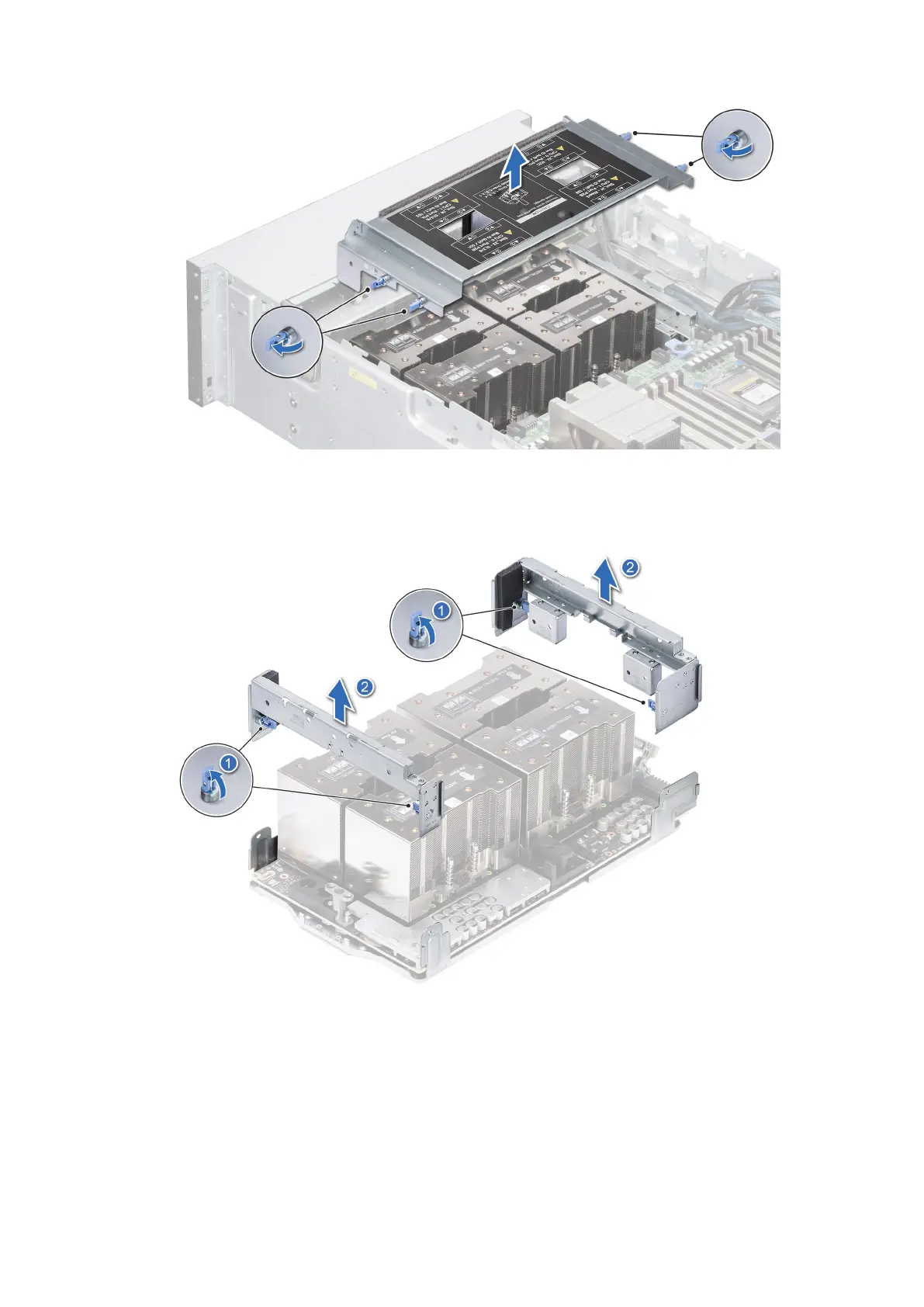 4. Loosen the captive screws that secure the GPU tray stopper and remove the stopper out of the system.