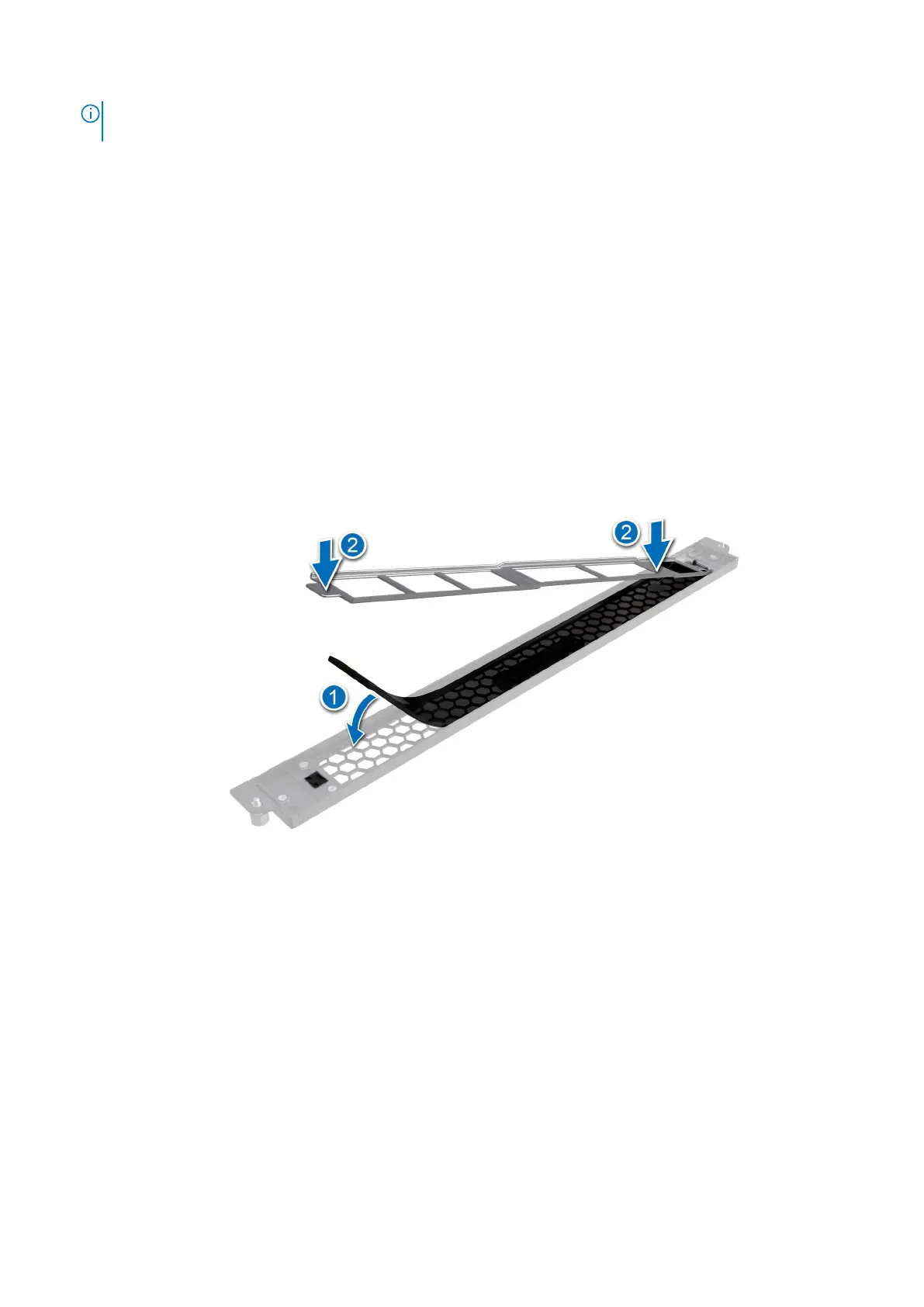 1. Place the new filter in the bezel cavity under the filter bracket. Ensure that the filter is smooth and flush in the allowed