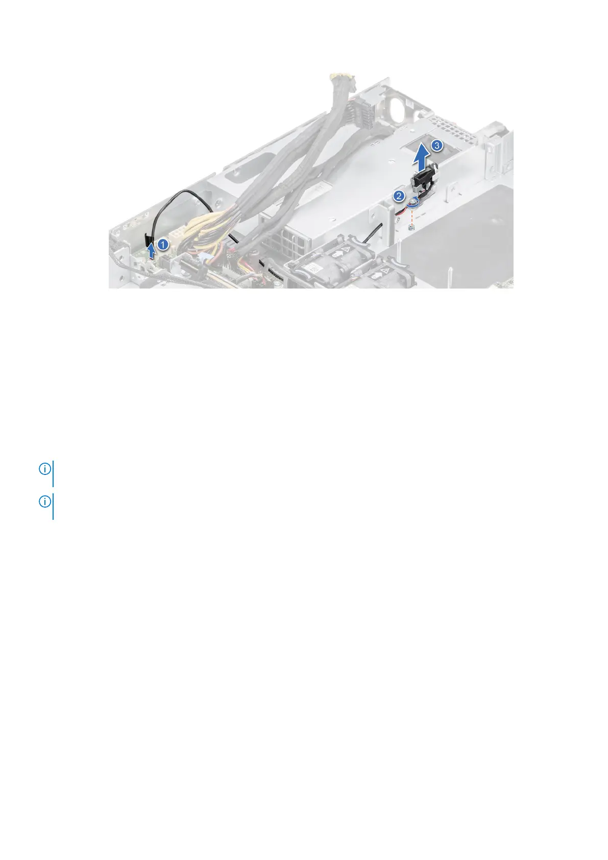 NOTE: Ensure that you note the routing of all the cables as you remove them from the system board. Route the intrusion