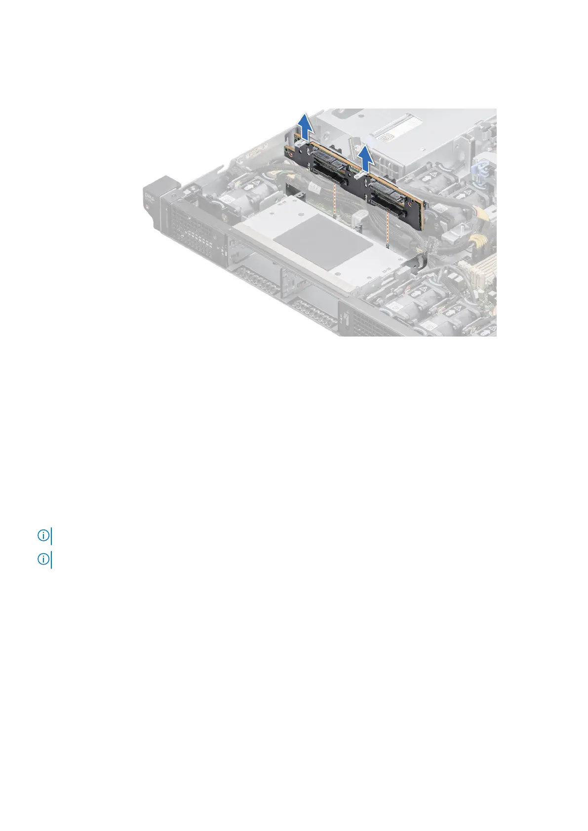 1. Holding the drive backplane by the edges lift it upwards to disengage the backplane from the guide pins.