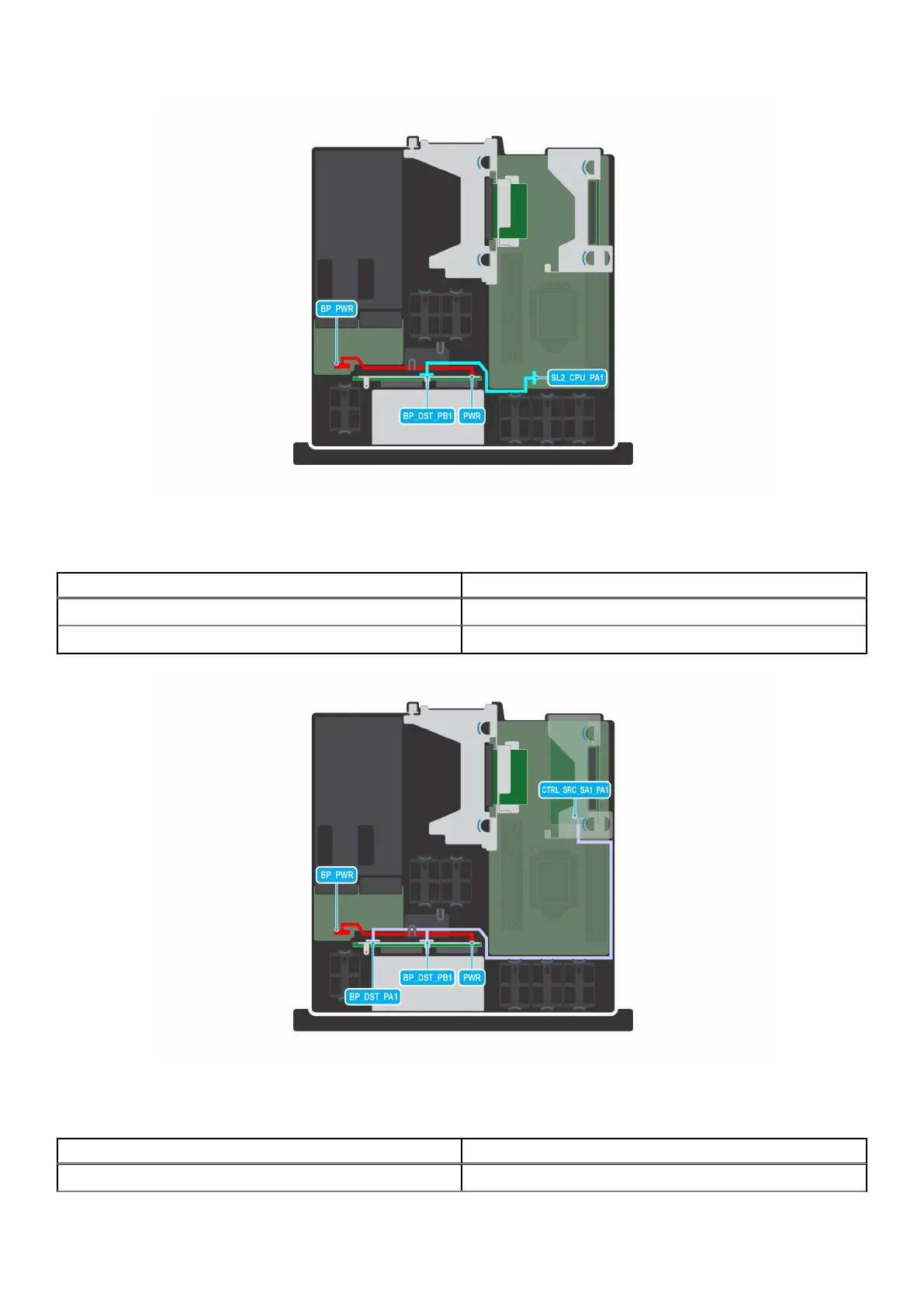 SL2_CPU_PA1 (NVMe signal connector on system board) BP_DST_PB1 (NVMe signal connector on backplane)
