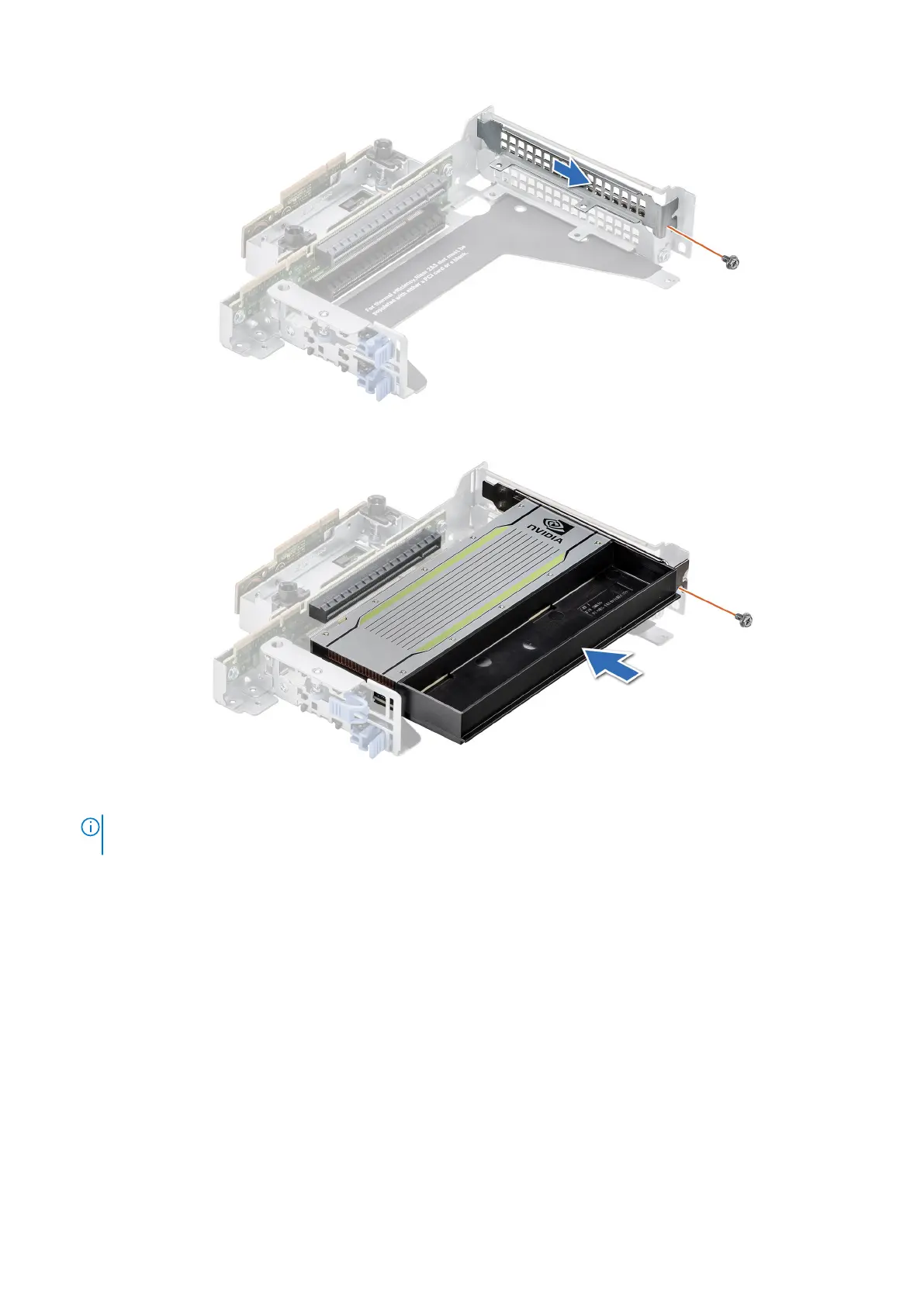 Figure 73. Installing single width GPU in Riser 2 and 3