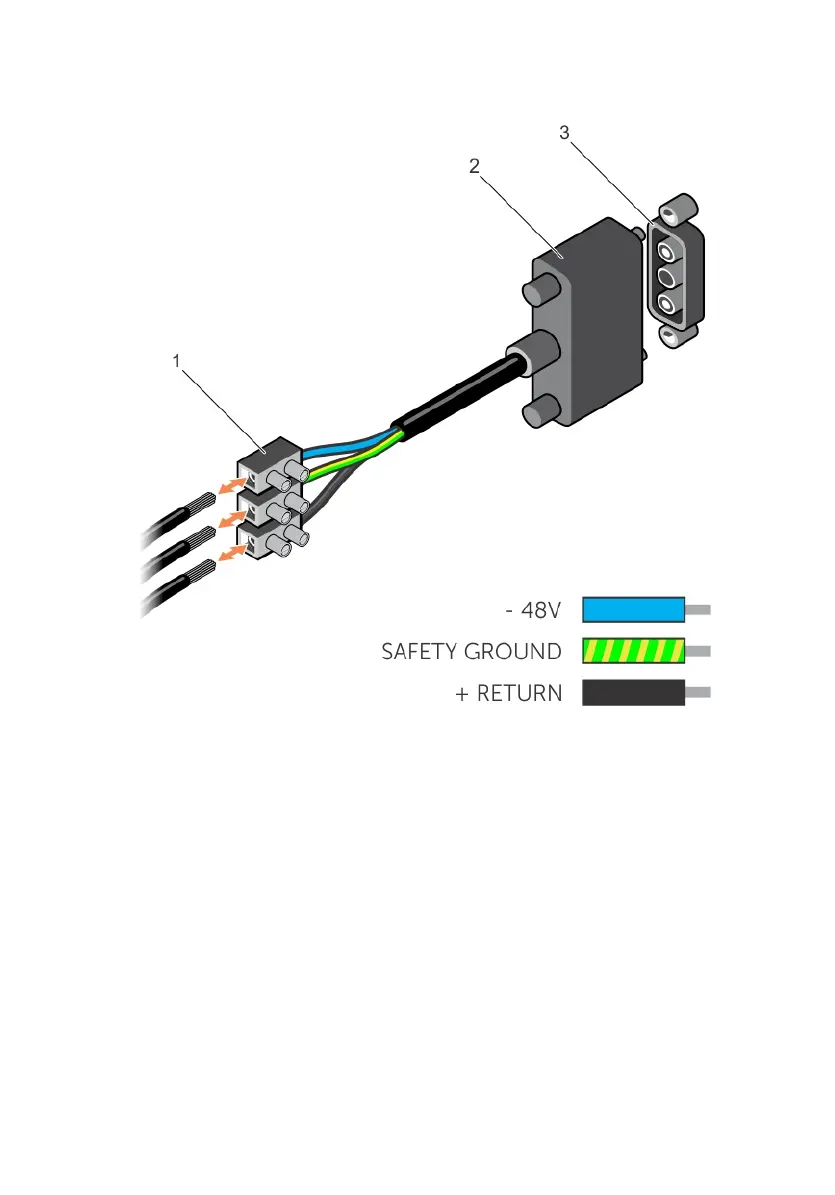 wire is -48V, the black wire is the positive return, and the yellow/green wire is the