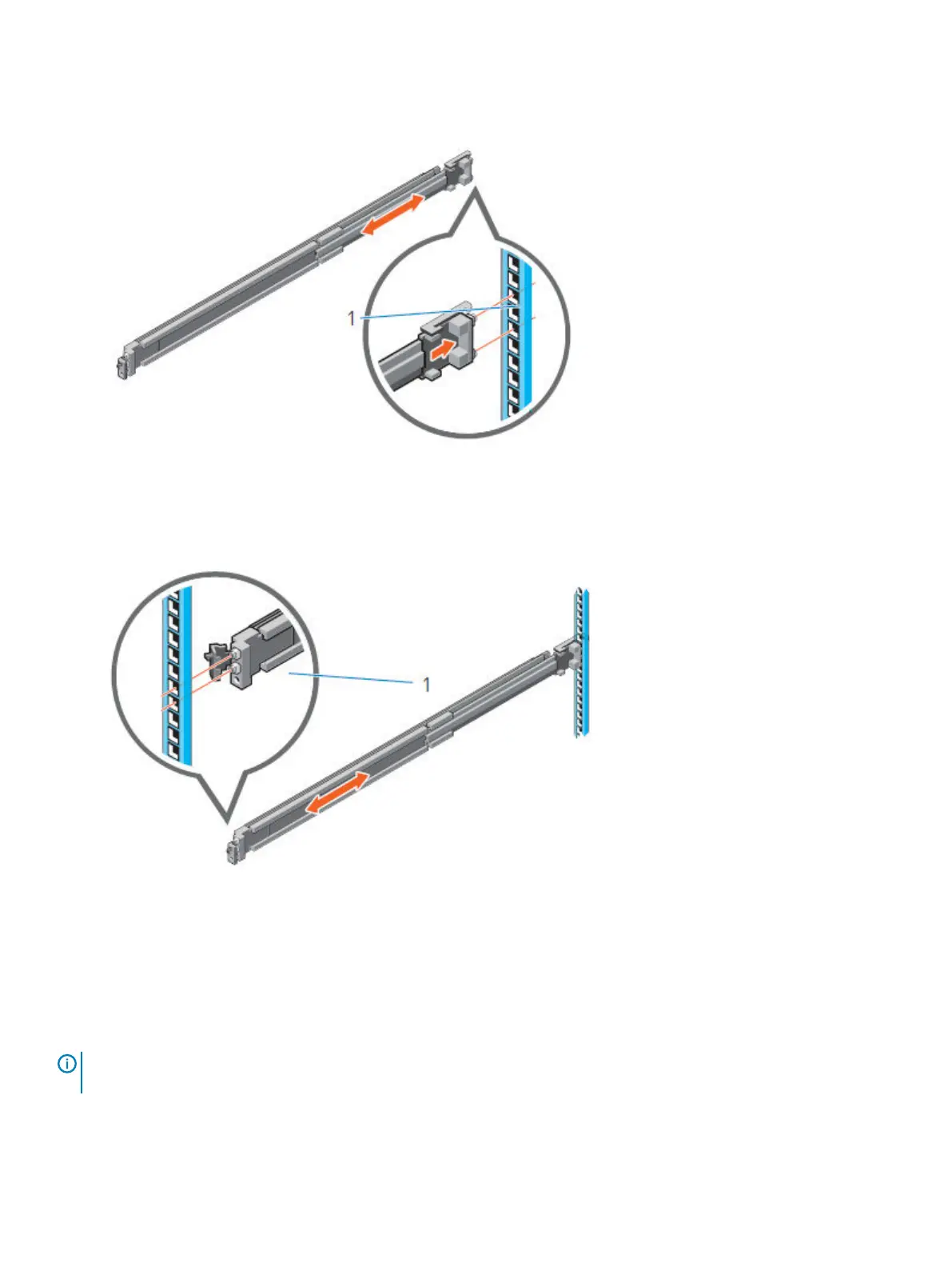 1. Align the screws with the designated U spaces on the front and rear rack flanges.