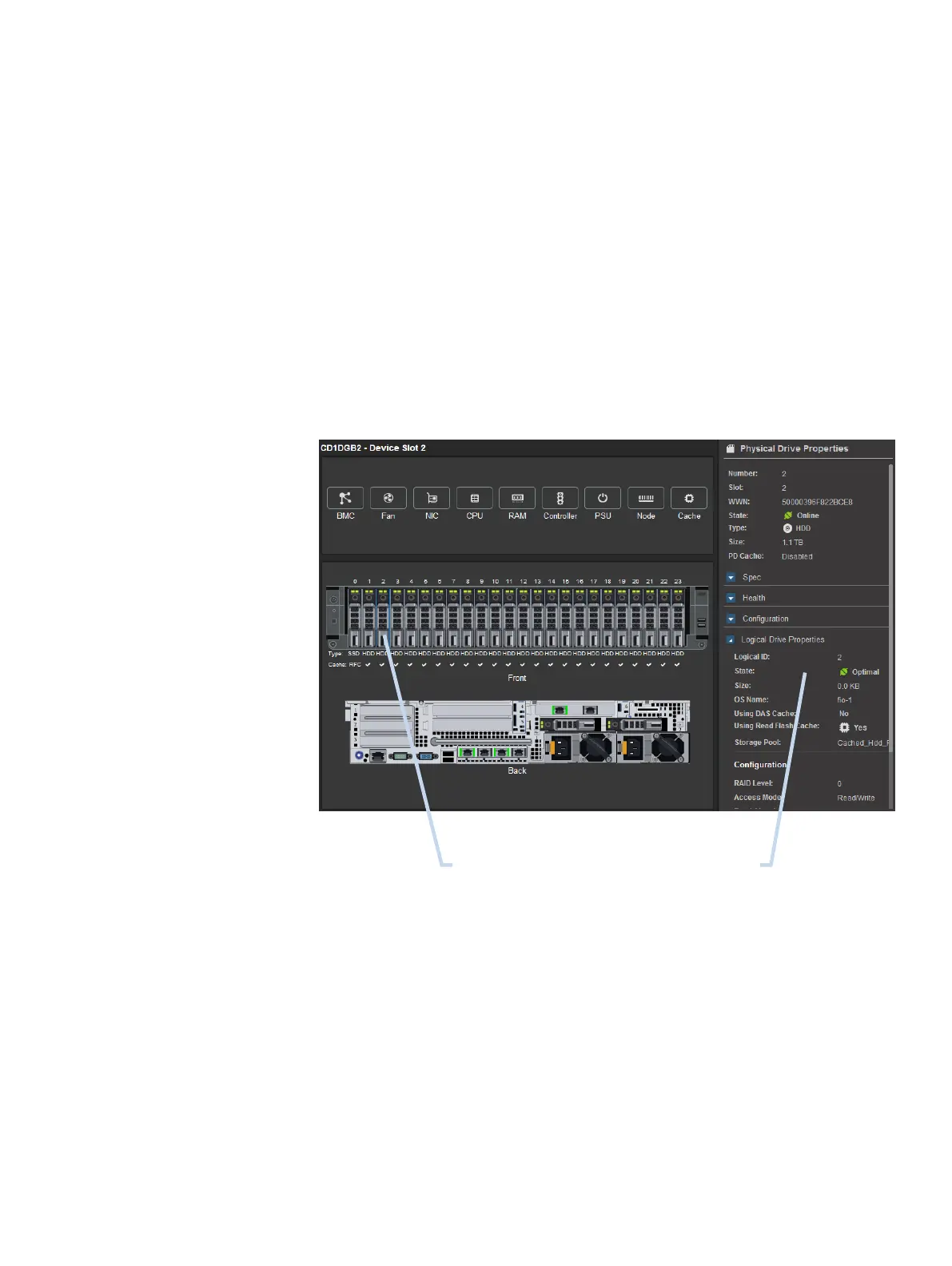 b. If the drive type is HDD, click other drives in the Front view until you find an