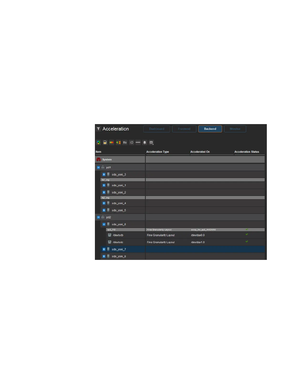 4. In the Accelerated On column, find the FG Storage Pool that contains the DAX
