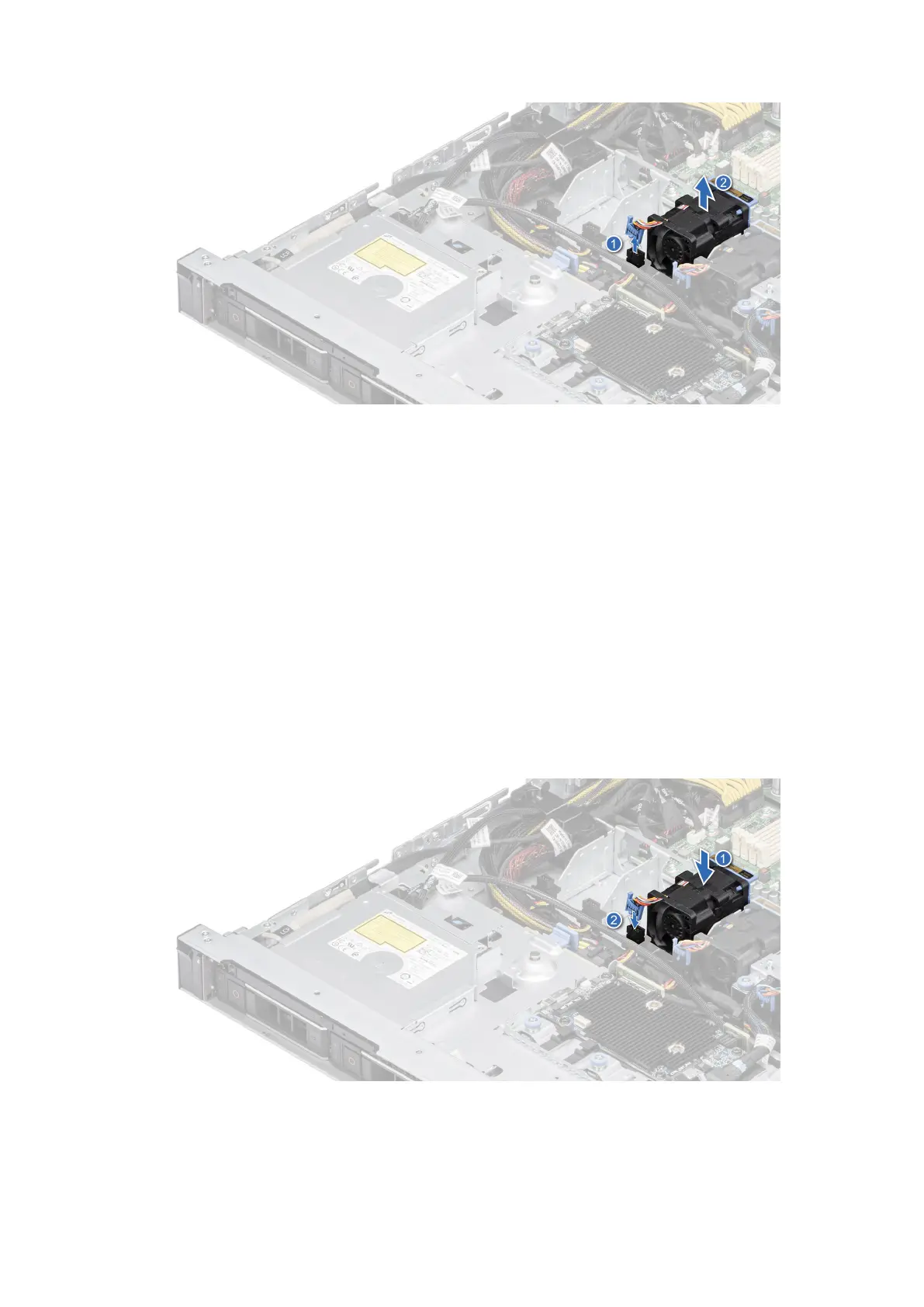 1. Lower the cooling fan into the cage until it is seated firmly.