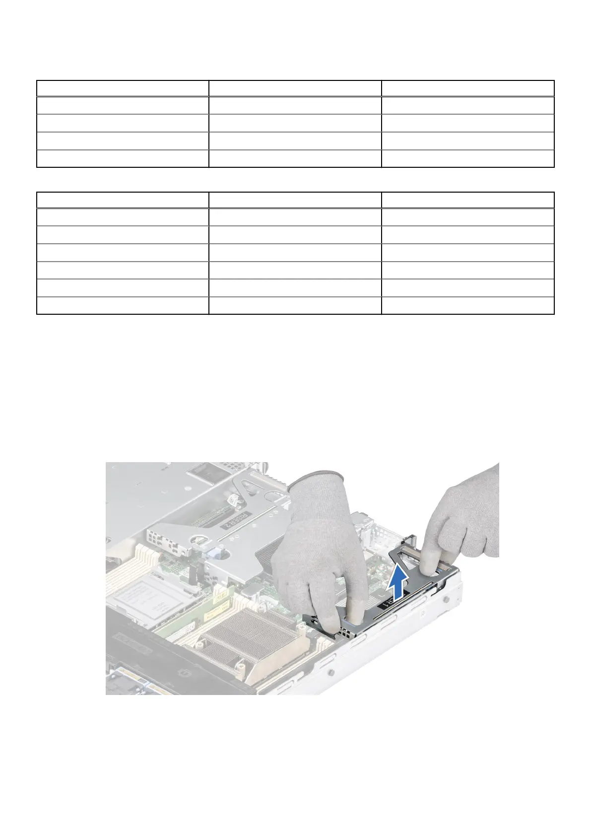 1. For Riser 1, hold the blue touch points, and lift the expansion card riser from the riser connector on the system board.