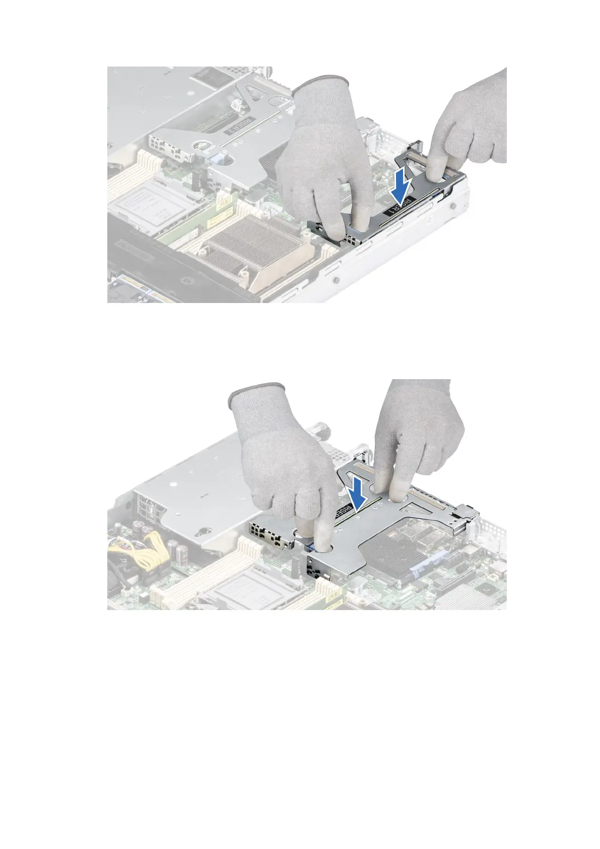 riser guide pin on the system board. Lower the expansion card riser into place until the expansion card riser connector is fully