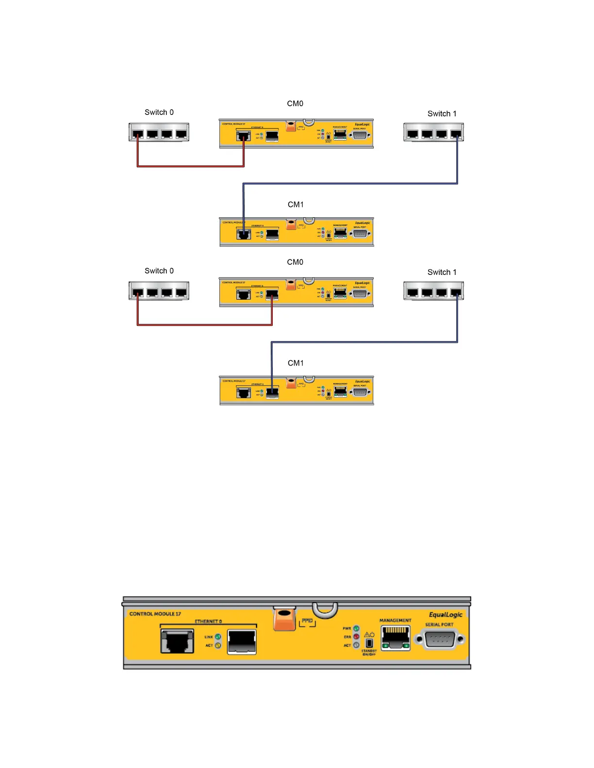 Note: If a network port is available for failover on either control module, but is not currently in use, its LEDs