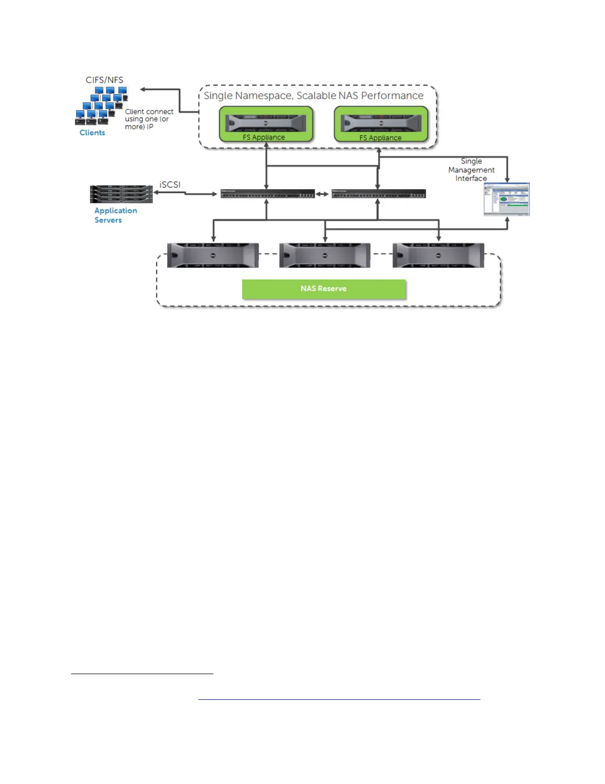 Single namespace: FluidFS presents a single file system namespace (up to 509TB usable capacity),