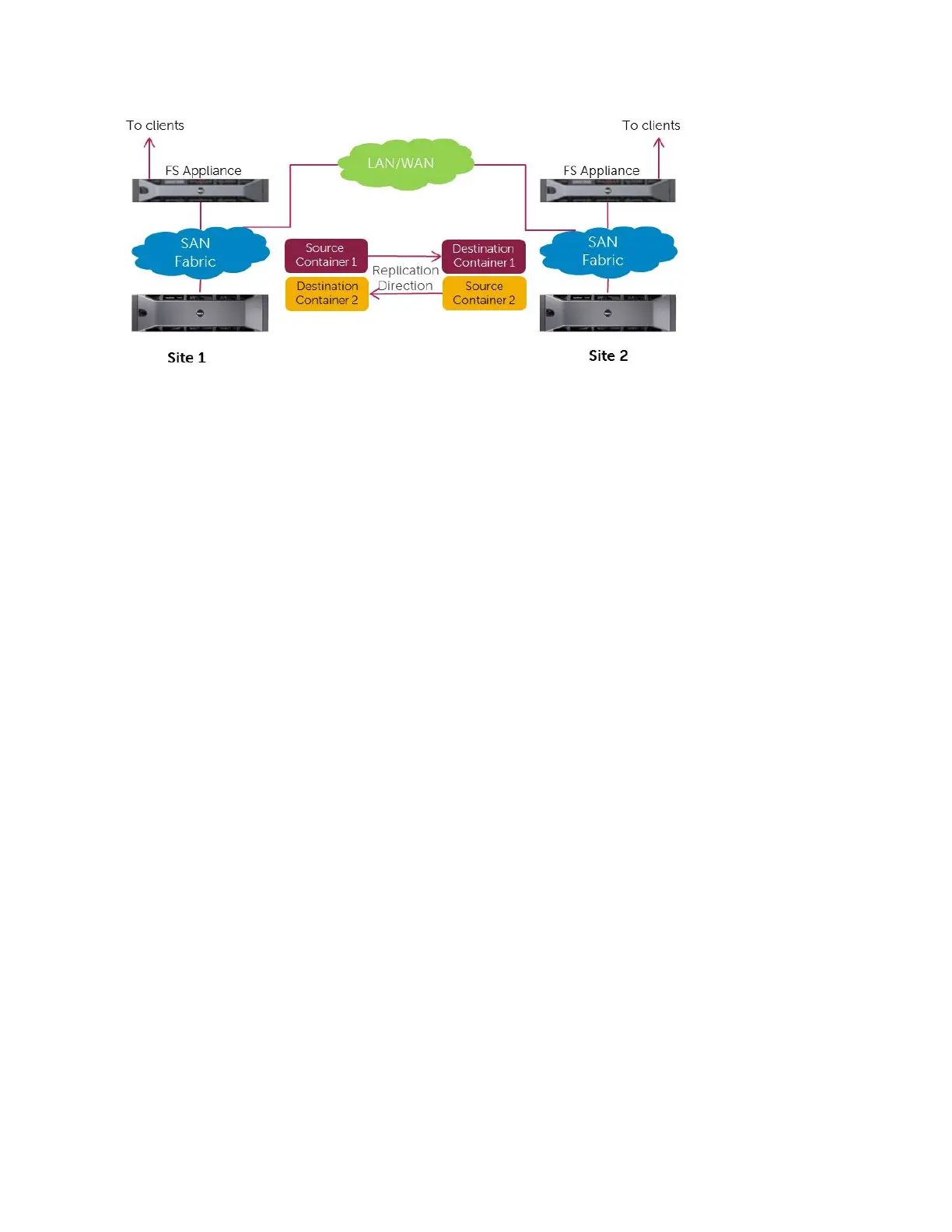• Both sites must be EqualLogic FS appliances. Replication from FS7600 to any other Dell product