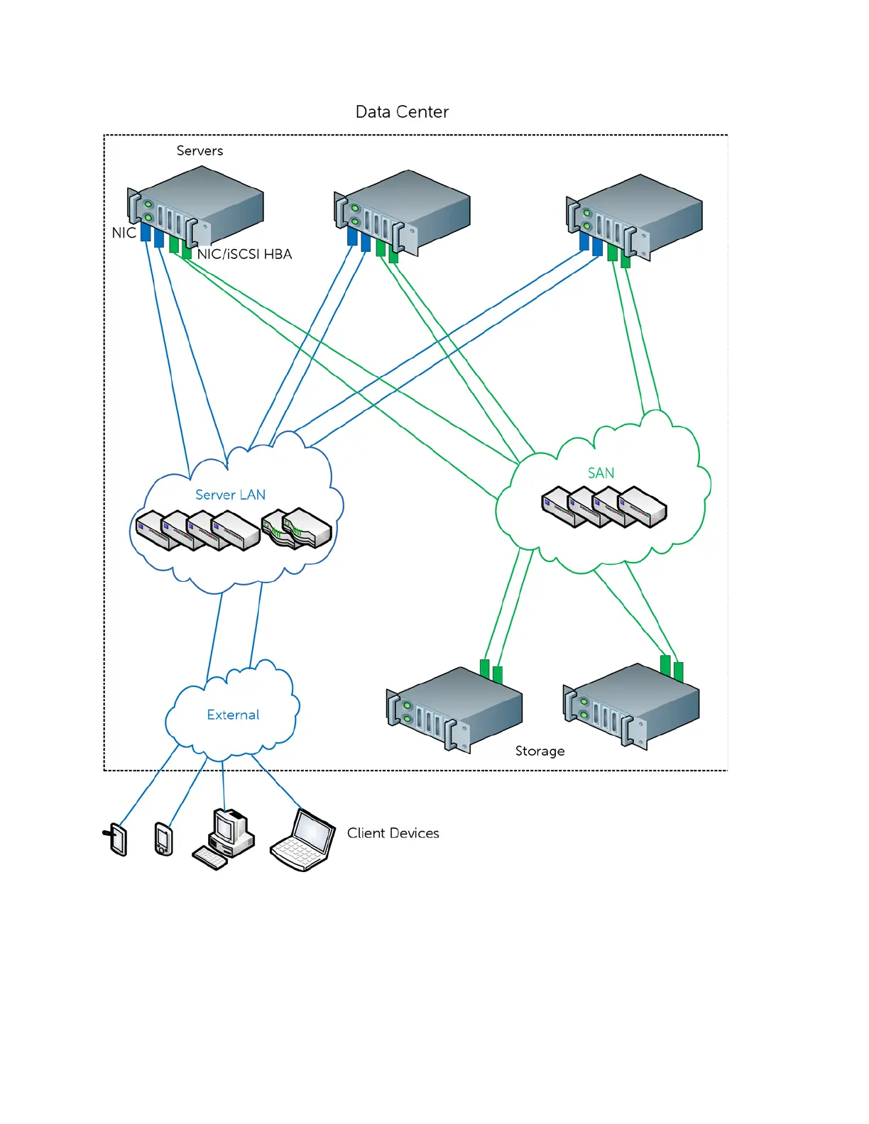 server LAN traffic, allowing the network ports and the inter-connecting links to carry multiple traffic