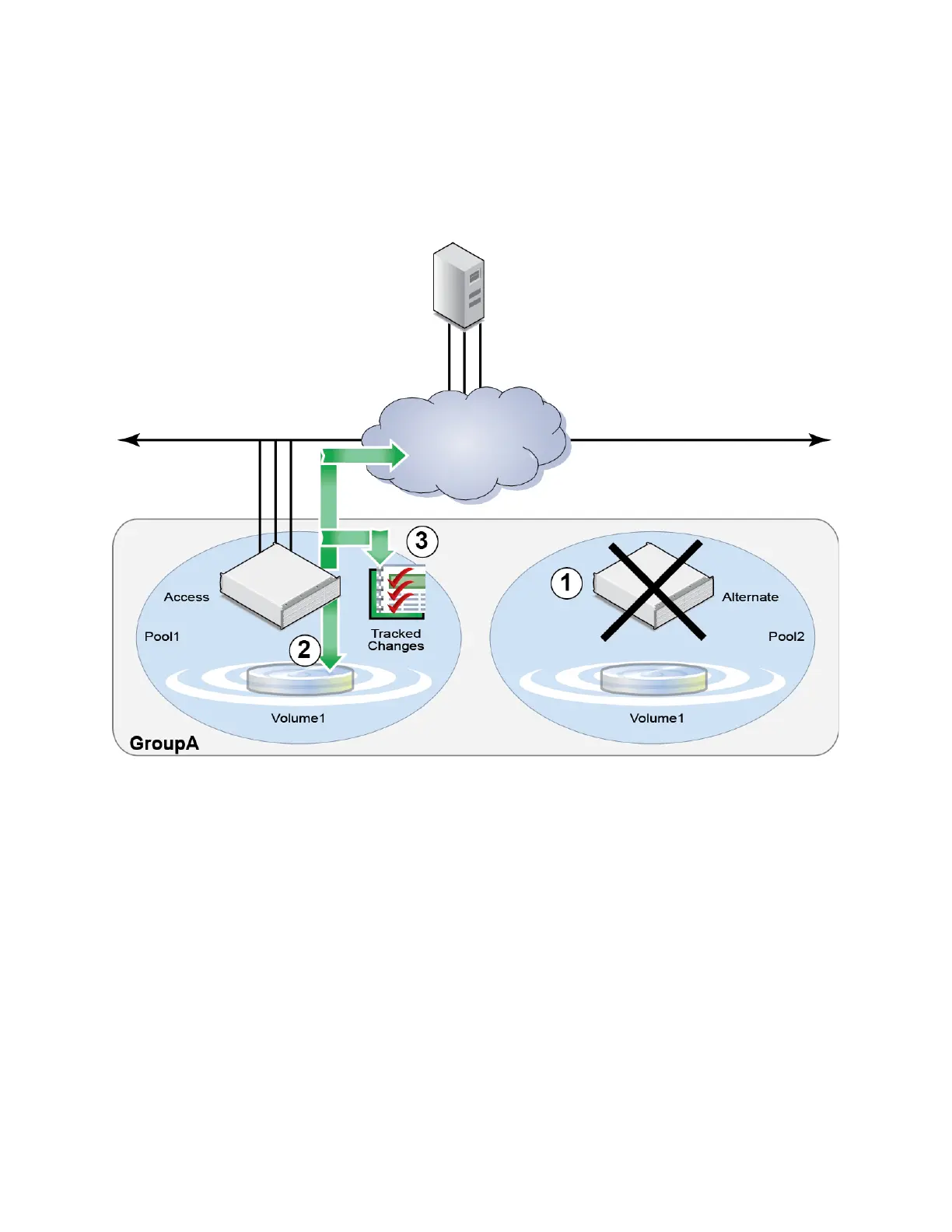 4. When the SyncAlternate volume becomes available, tracked changes are written to the