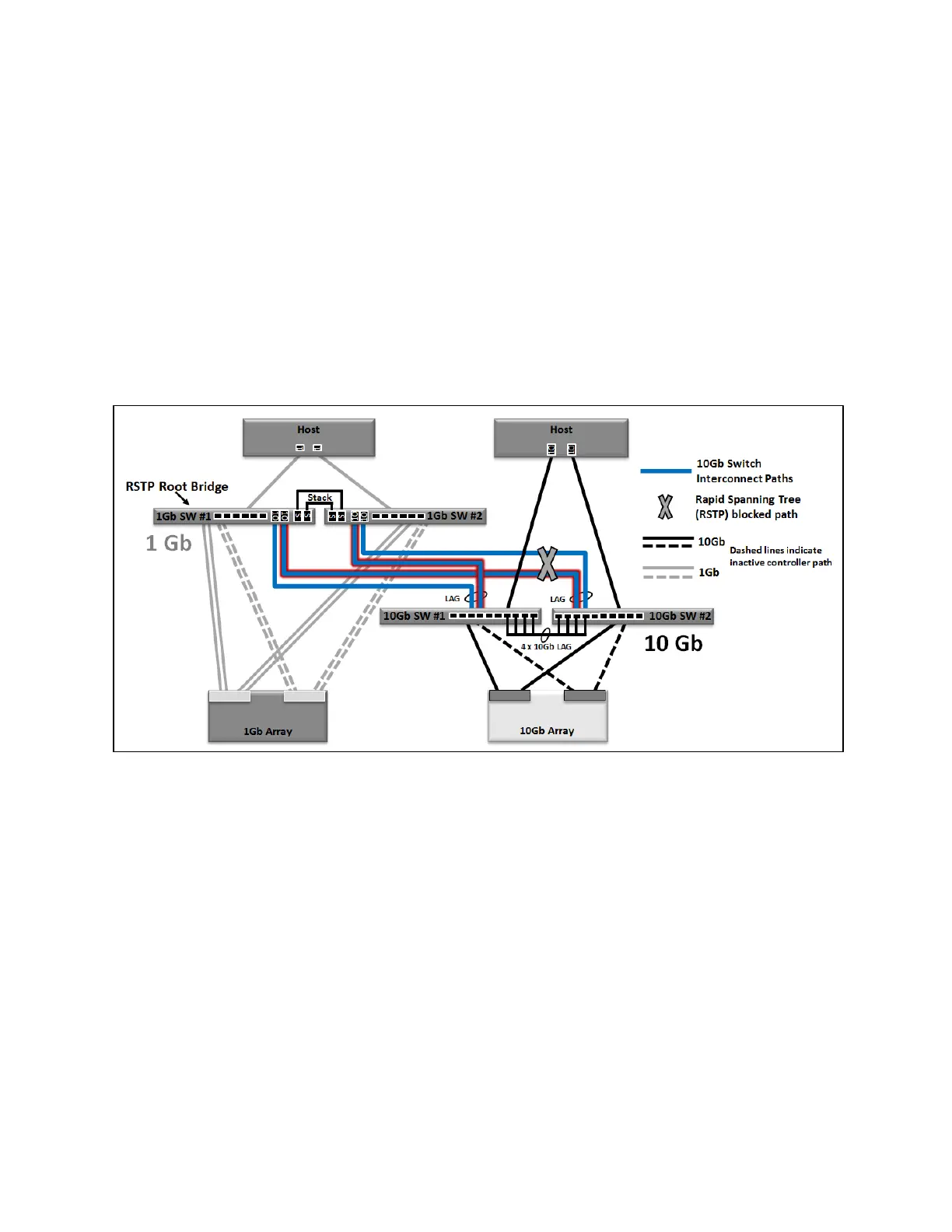 The LAG between the 10Gb switches in Figure 28 creates a loop in the network. Rapid Spanning Tree