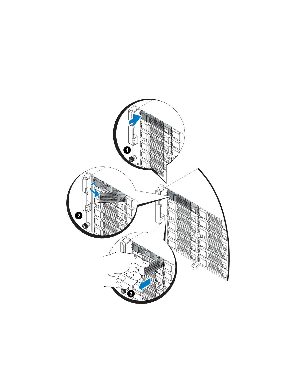 3. Hold the drive by the carrier and slide the drive most of the way into a slot (callout 1 in Figure 13).