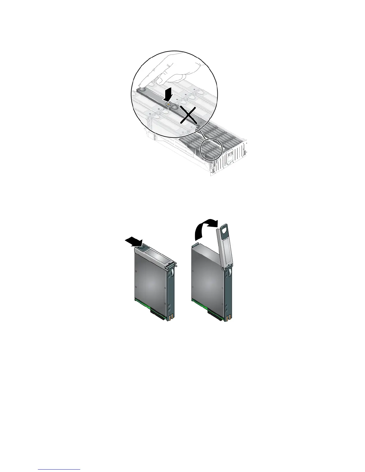 6. Open the disk drive release lever by sliding the latch toward the front of the array and pulling up the latch arm.