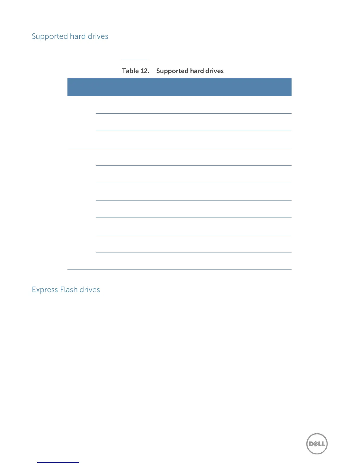 Table 12 lists the internal hard drives supported by the R720 and R720xd. For the latest information