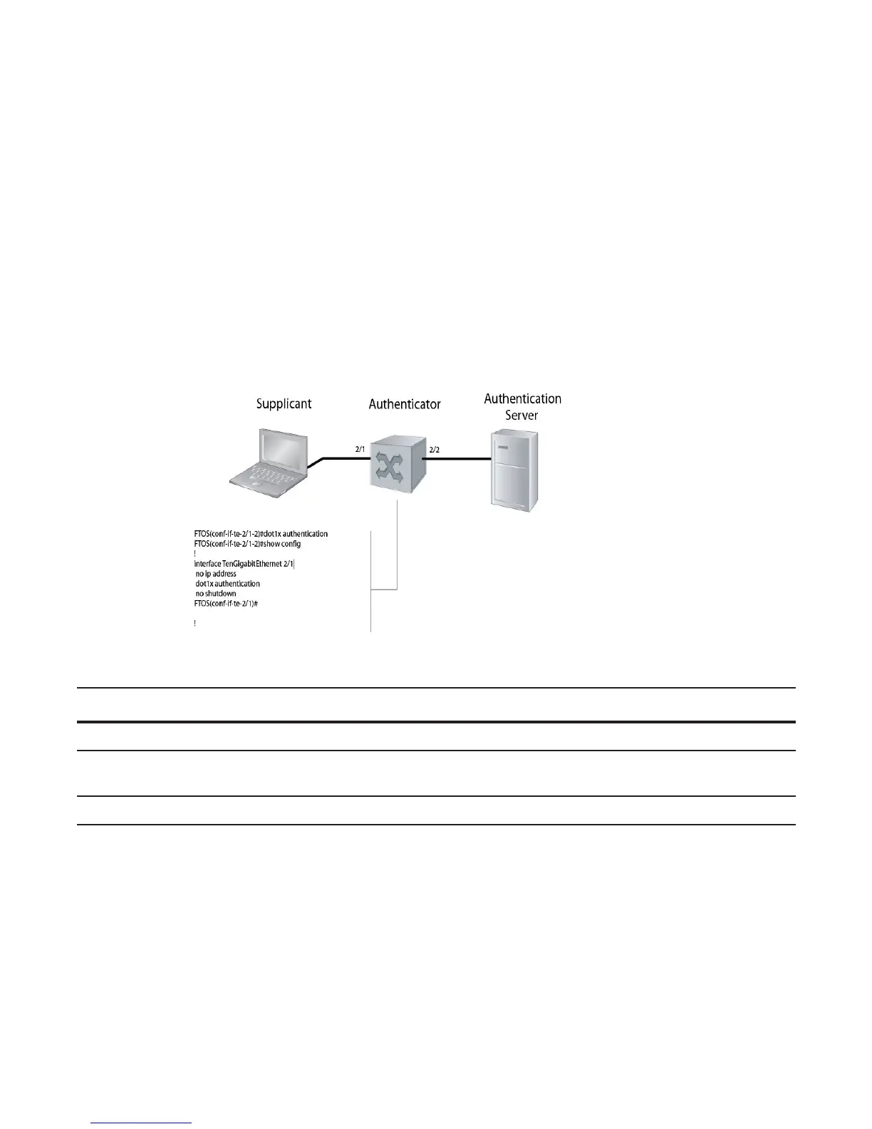 • FTOS supports 802.1X with EAP-MD5, EAP-OTP, EAP-TLS, EAP-TTLS, PEAPv0, PEAPv1, and