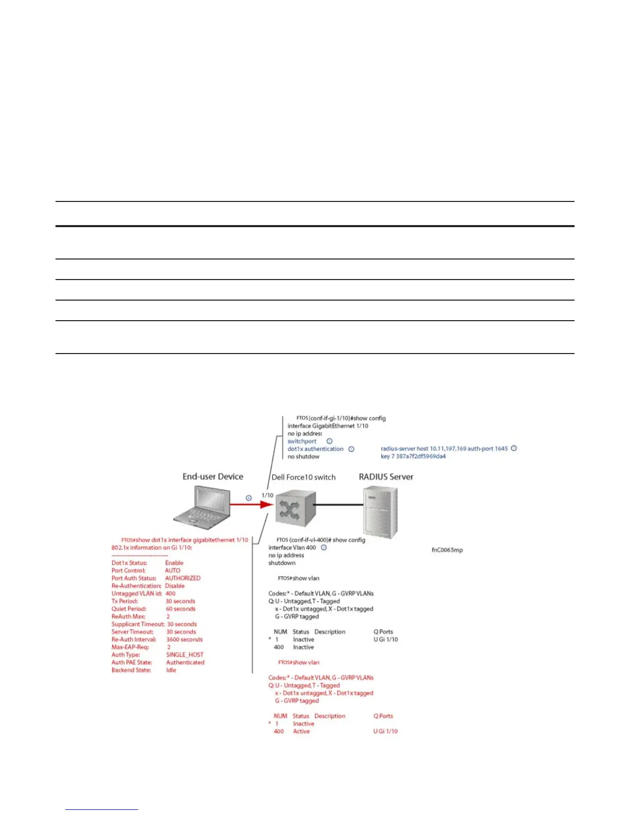 procedure: 1) the host sends a dot1x packet to the Dell Force10system, 2) the system forwards a RADIUS