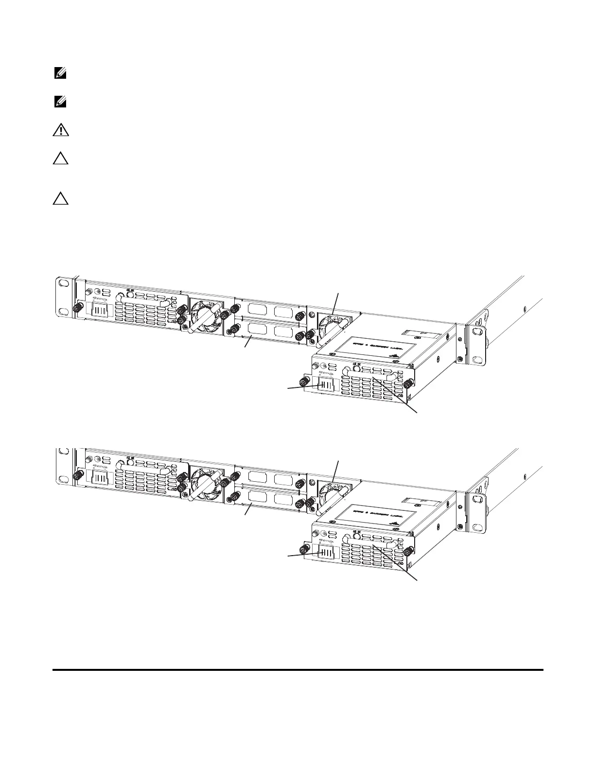 The power supply modules should slide into the slots smoothly. Do not force a module into a slot. This
