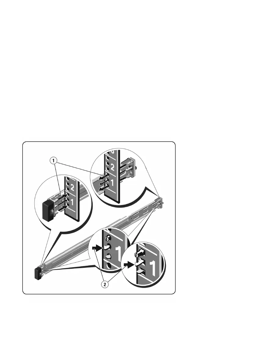 3 Engage the back end of the rail until it fully seats on the vertical rack flange