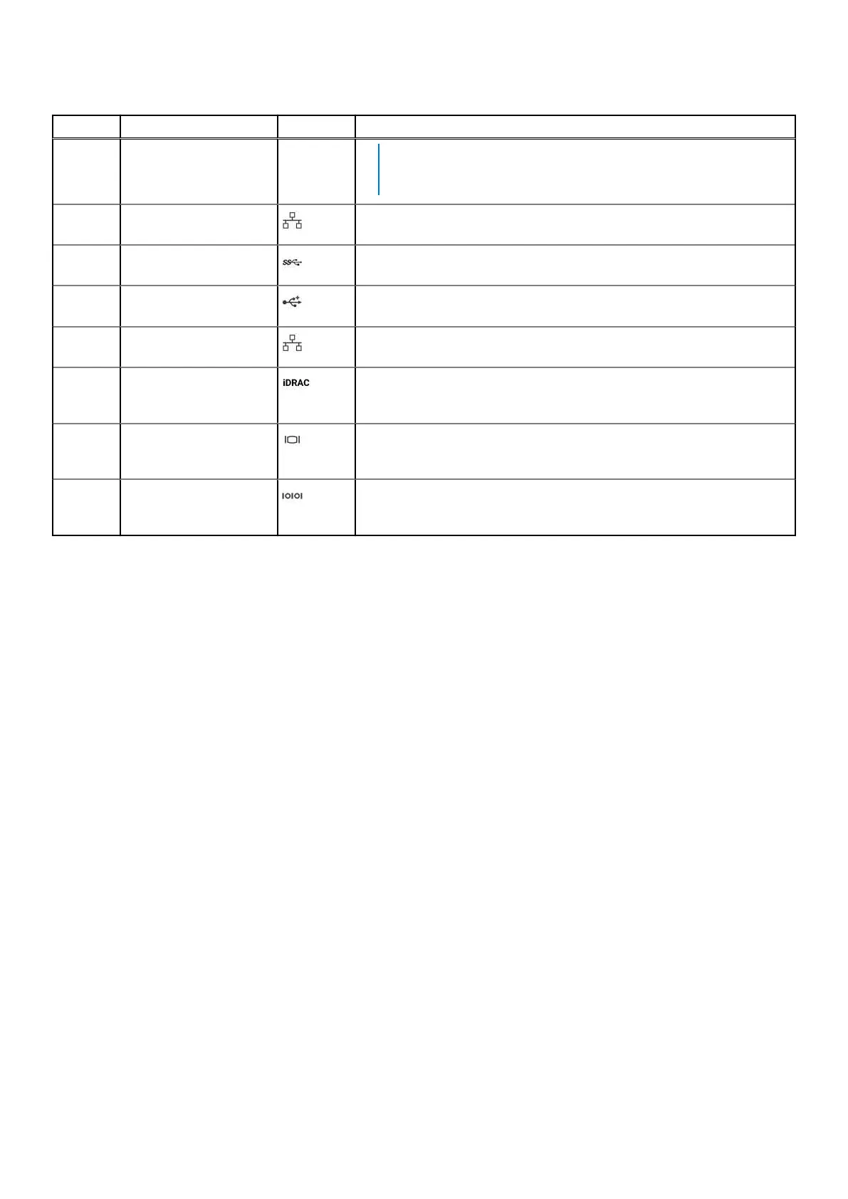 9 iDRAC ethernet port Enables you to remotely access iDRAC. For more information, see the