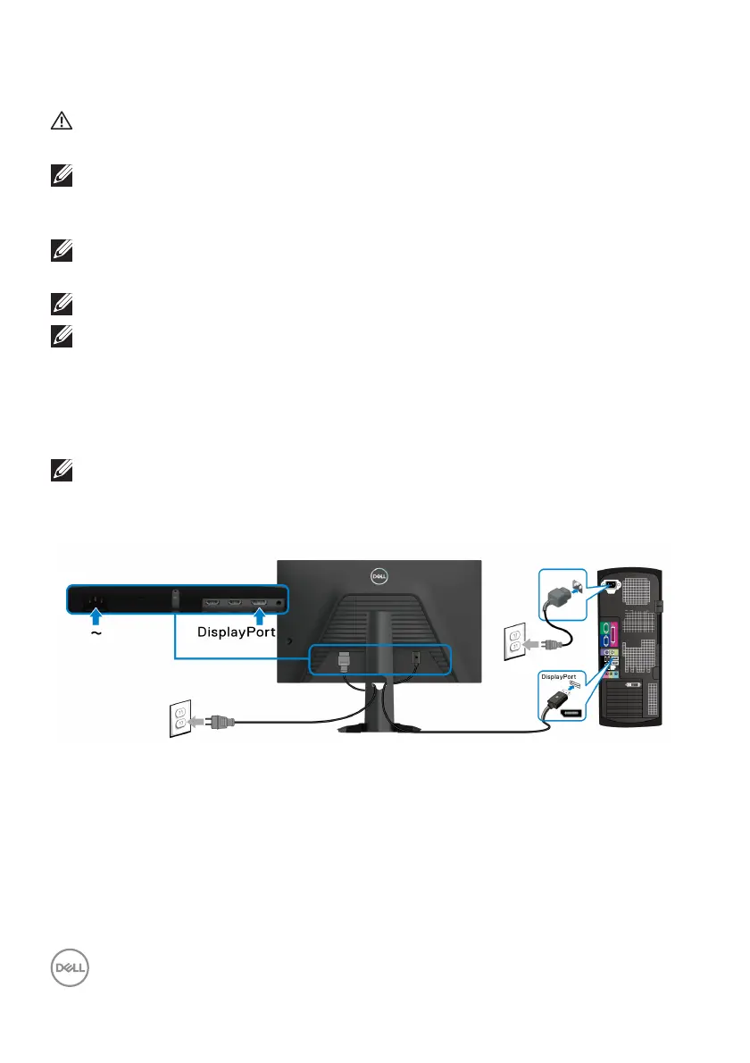 Connecting the DisplayPort (DP to DP) cable and power cables