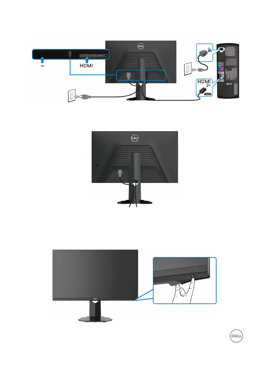 Dell G2422HS - Connecting the HDMI Cable and Power Cables; Organizing Your Cables; Turning on Your Monitor
