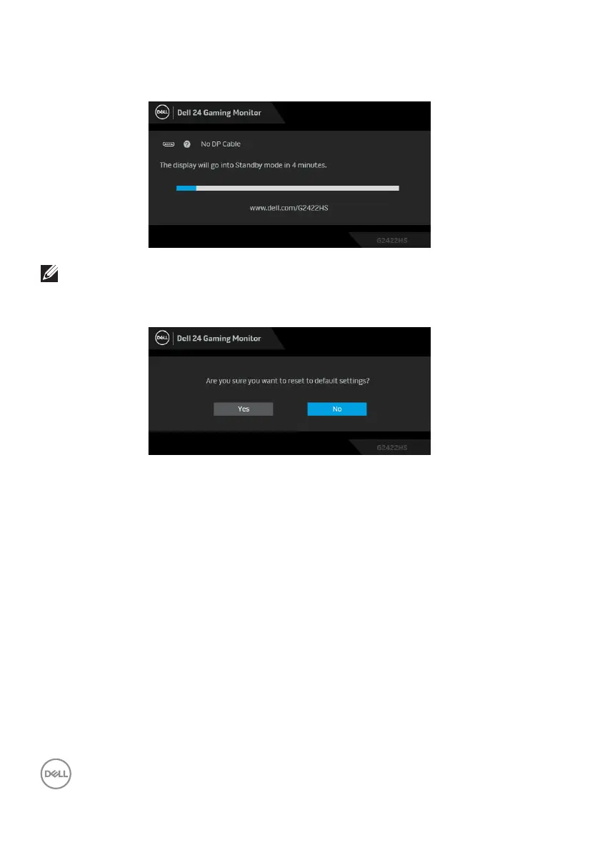 If either HDMI or DP input is selected and the corresponding cable is not connected,