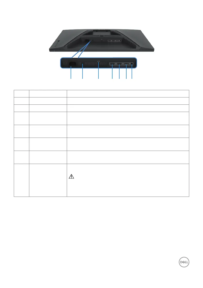 1 Power connector Connect the power cable (shipped with your monitor).