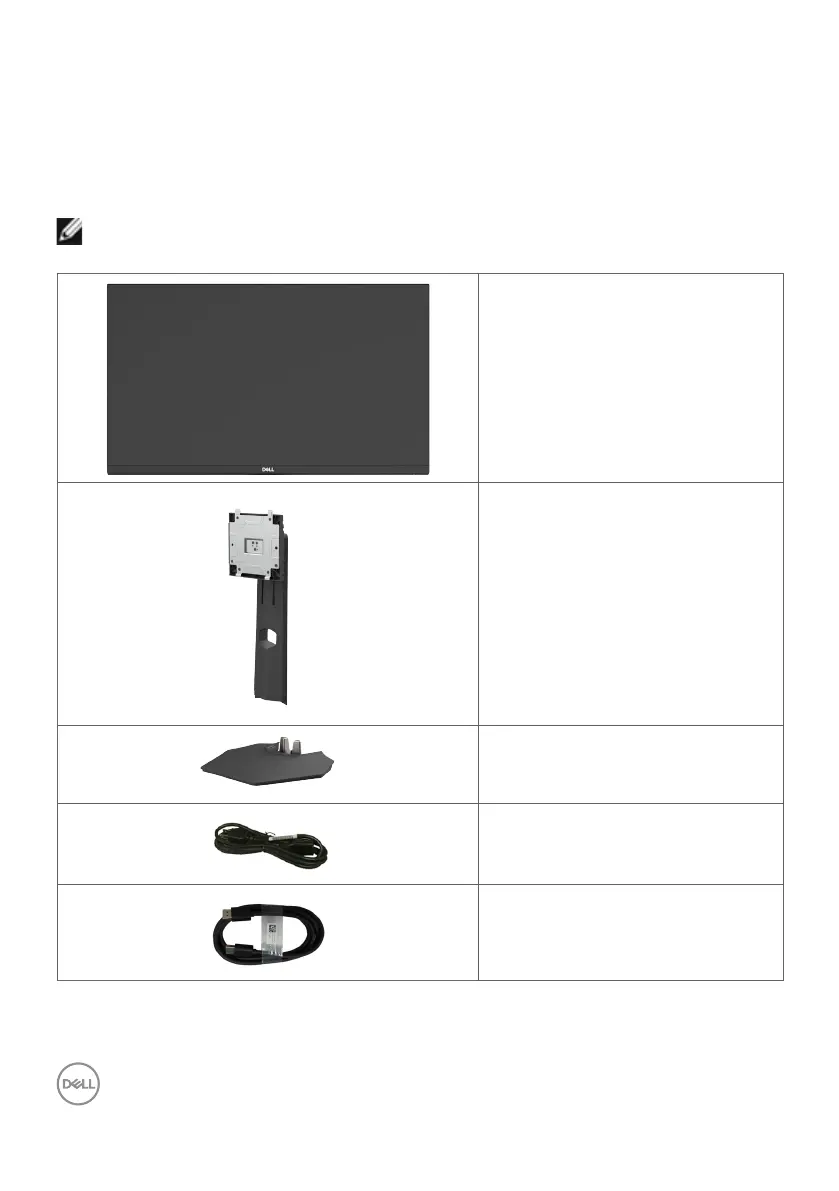 Your monitor ships with the components shown in the table below. If any component is