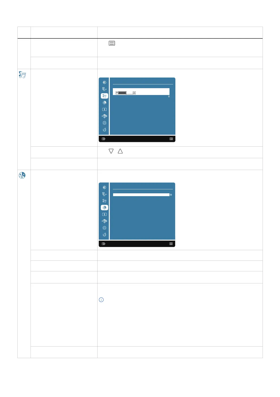 User Color Individual adjustments for red (R), green (G), blue (B). Each step will increase/decrease