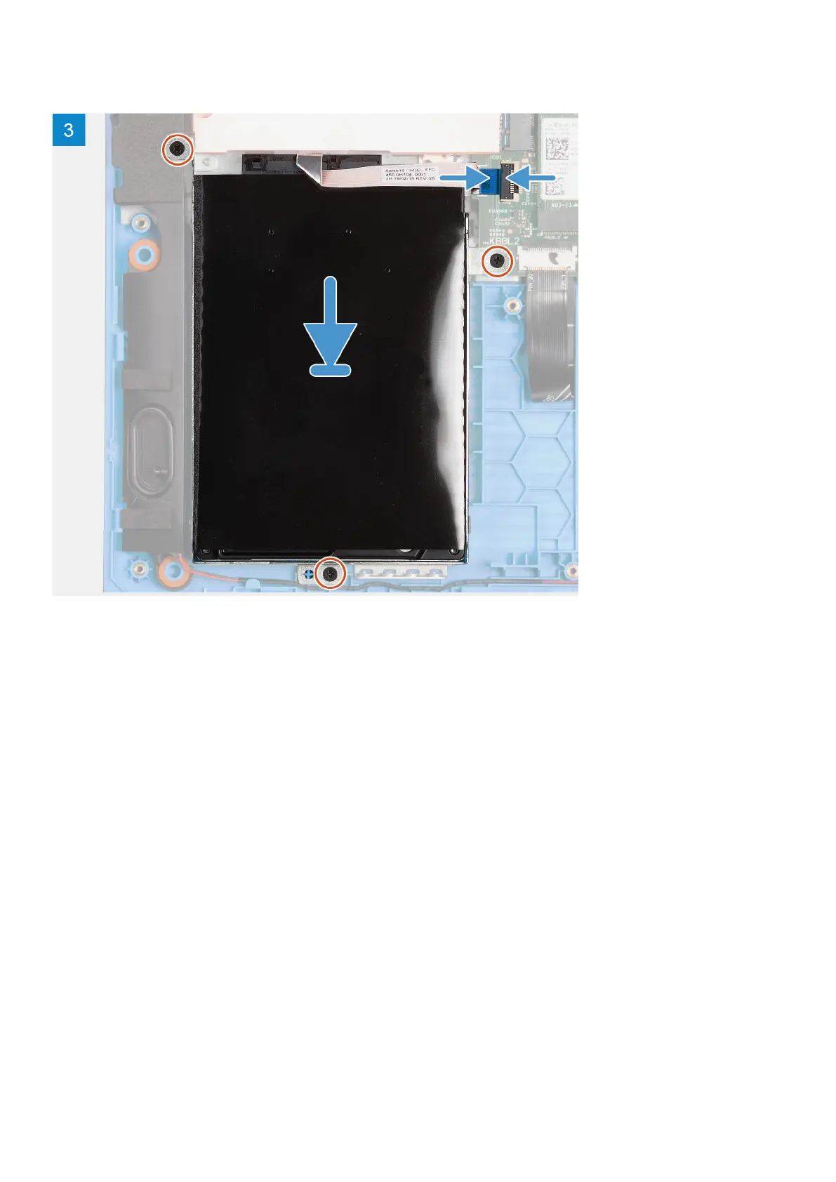 5. Replace the three screws (M2x3) that secure the hard-drive assembly to the palm-rest and keyboard assembly.