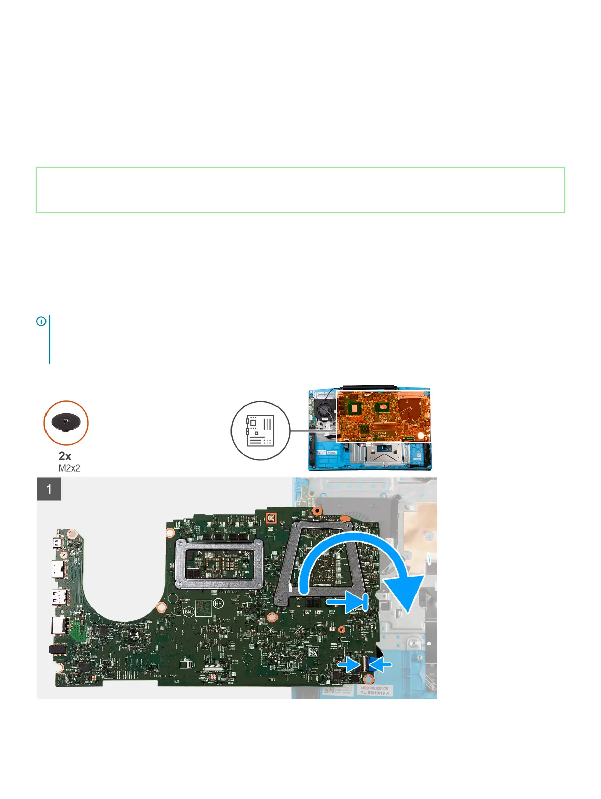 The following image indicates the location of the system board and provides a visual representation of the installation procedure.
