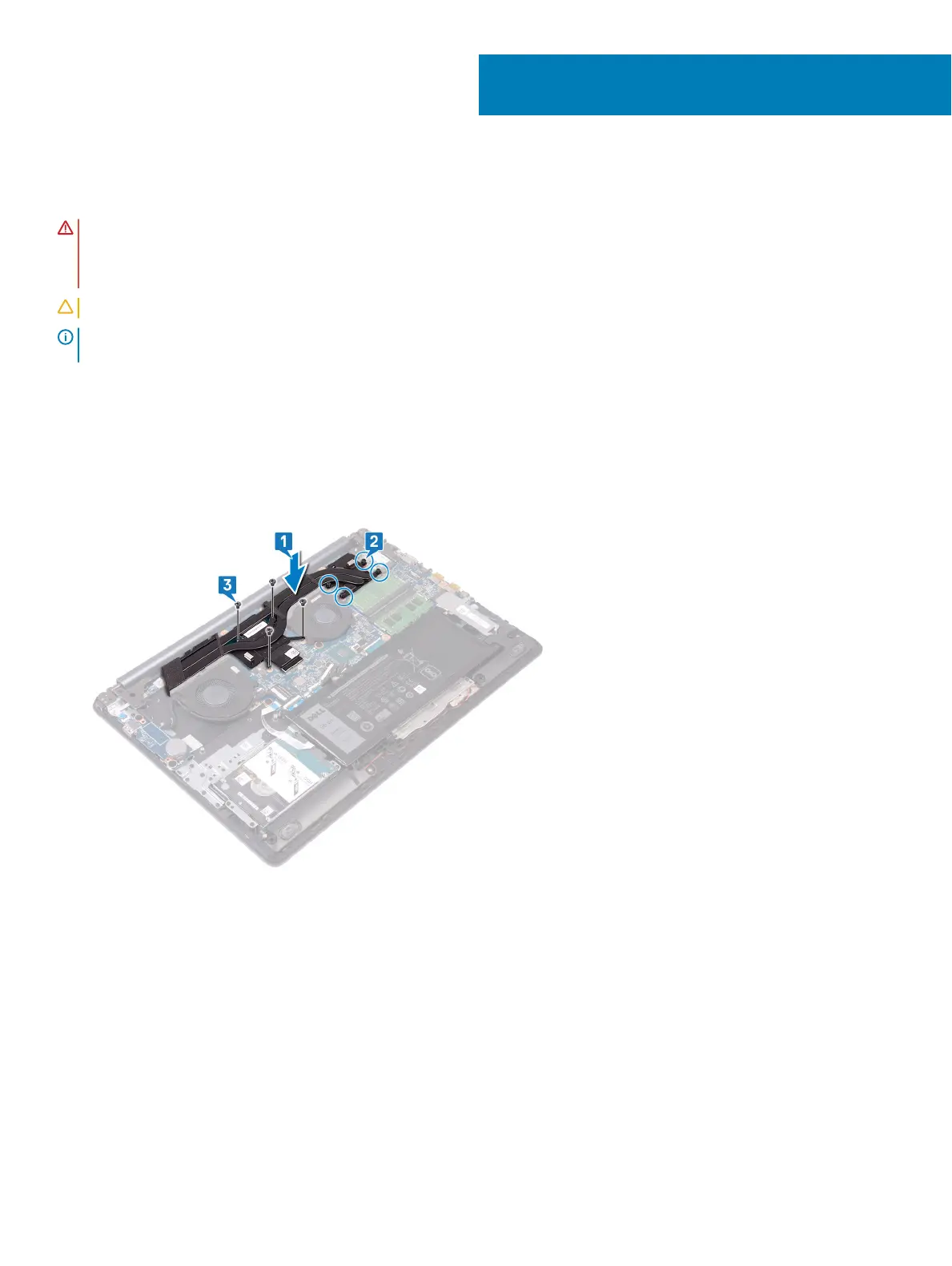 1 Place the heat sink on the system board and align the screw holes on the heat sink with the screw holes on the system board.