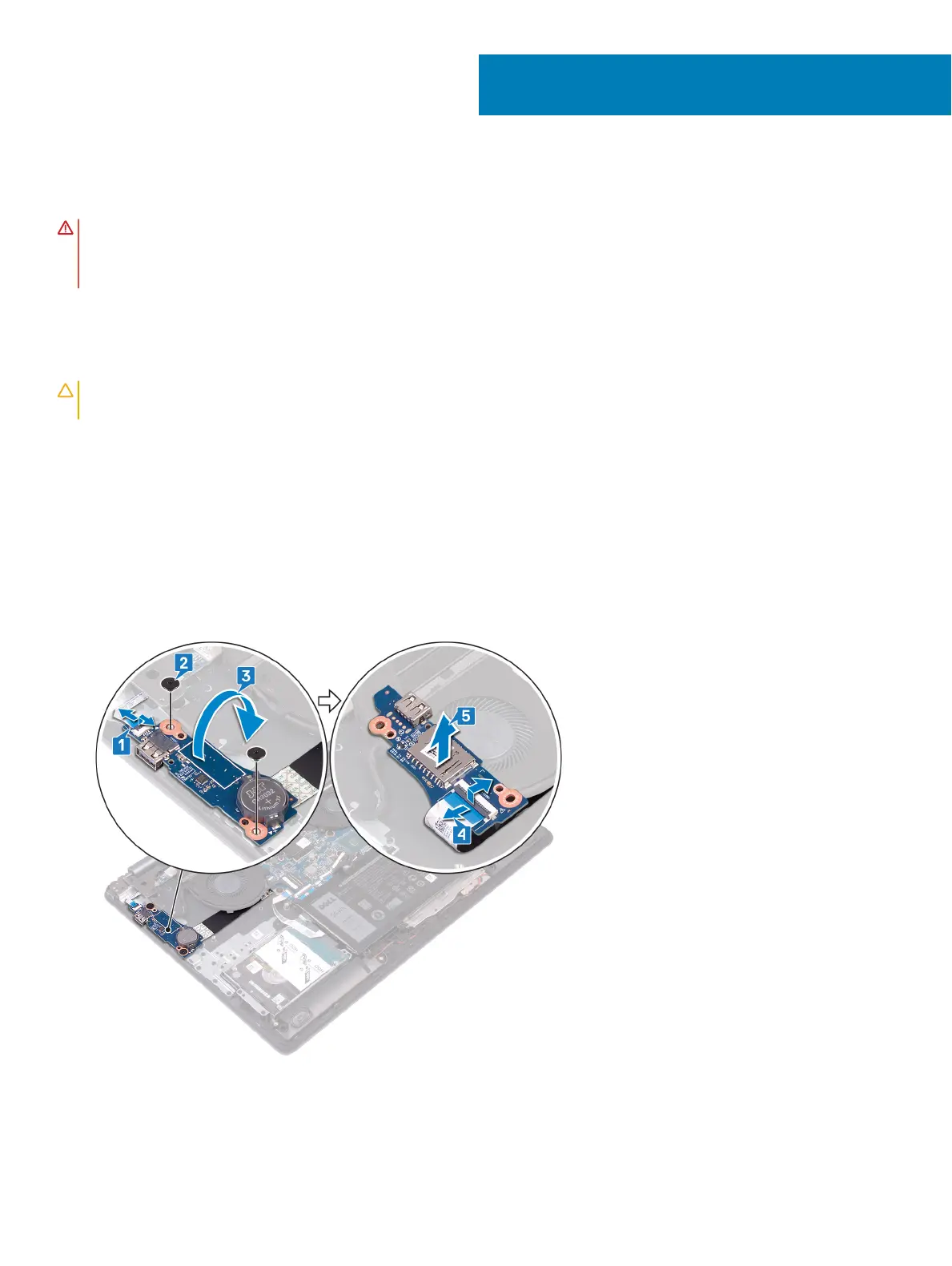 1 Open the latch and disconnect the power-button board cable from the system board.