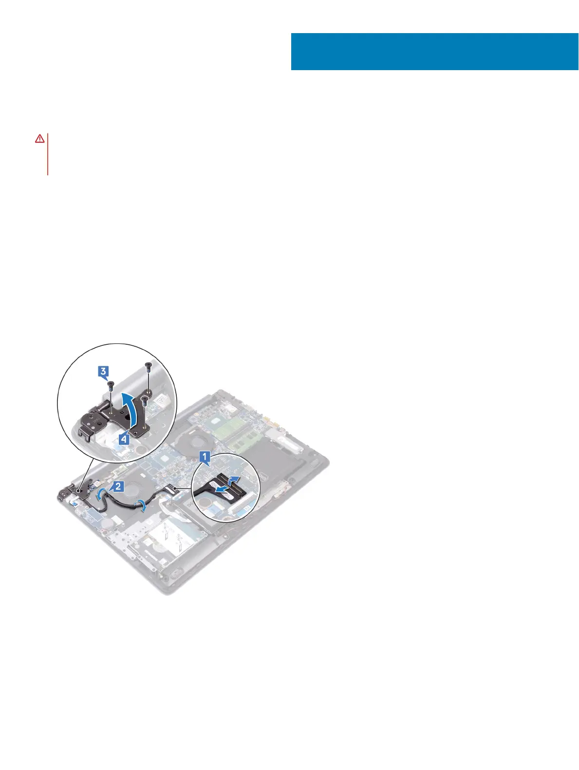 6 Gently peel o the tape that secures the power-button board to the palm rest and keyboard assembly.