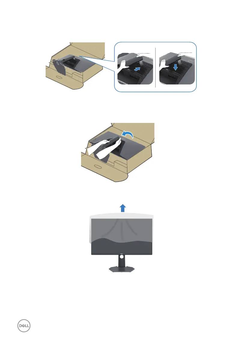 7. Hold the stand riser and lift the monitor carefully, and then place it on a flat