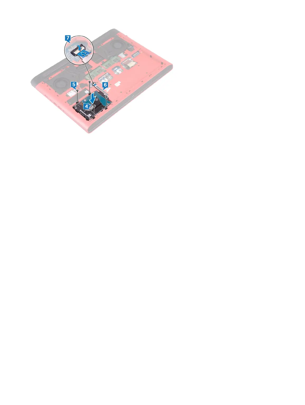 7 Slide the hard-drive cable into the connector on the system board and close the latch to secure the hard-drive cable.