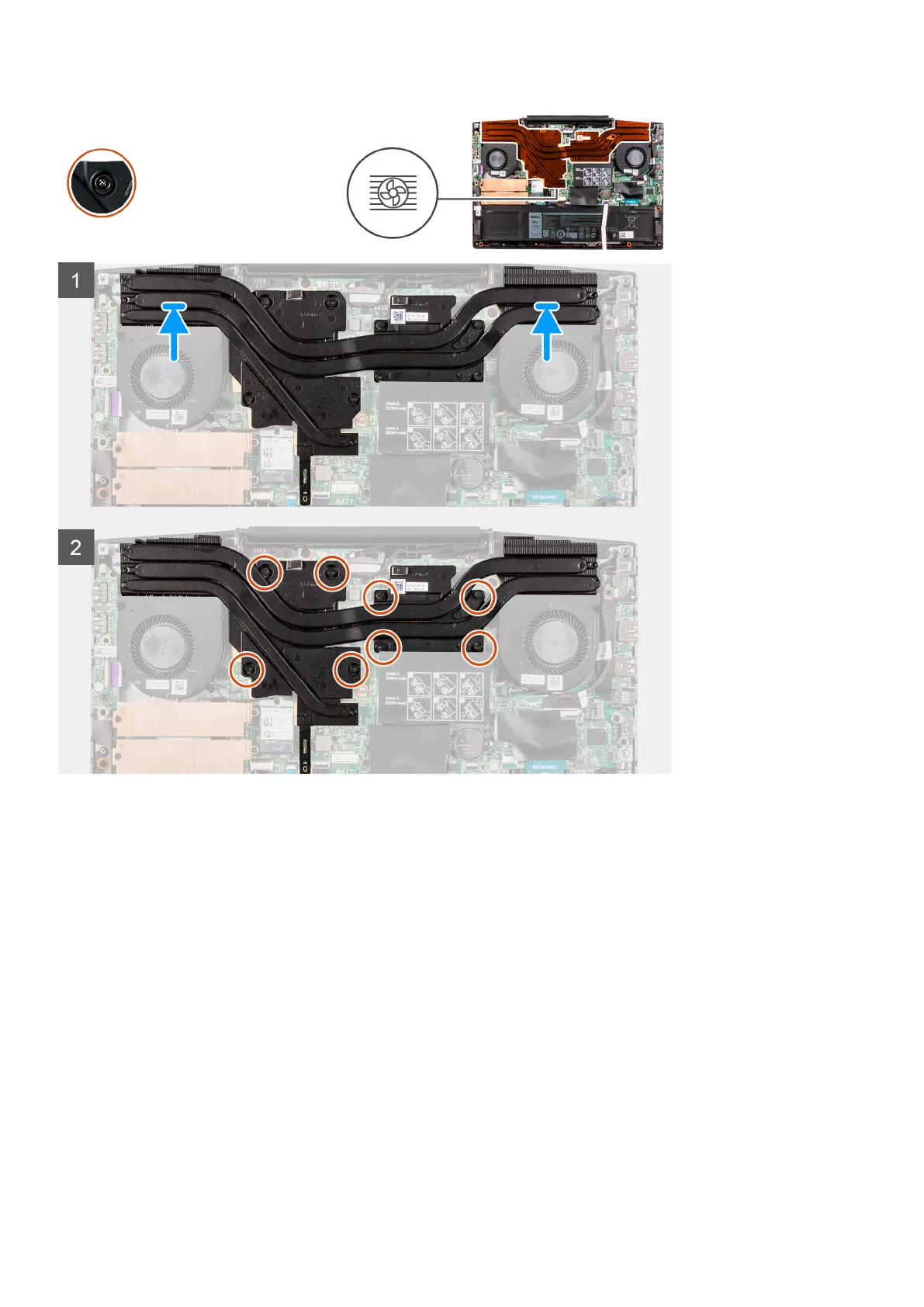 2. In sequential order (as indicated on the heat sink), tighten the eight captive screws that secure the heat sink to the system board.
