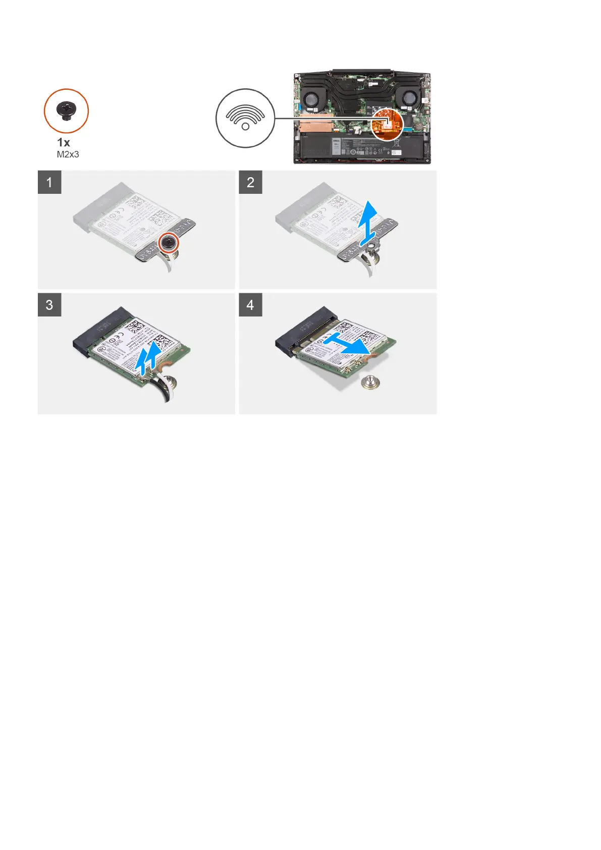 1. Remove the screw (M2x3) that secures the WLAN card to the system board.