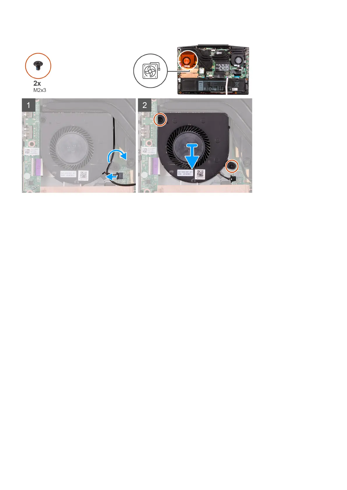 3. Remove the two (M2x3) screws that secure the left fan to the system board.