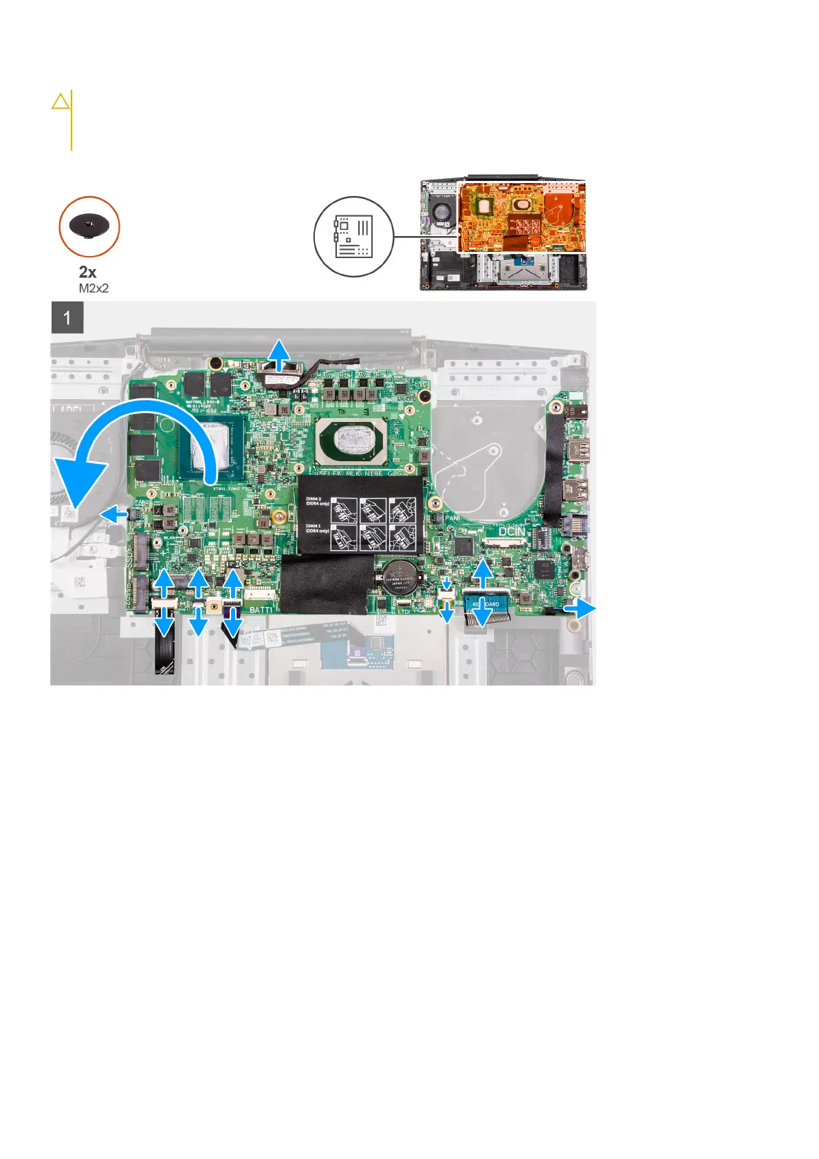 The I/O board connector is located underneath the system board. Turn the system board over and disconnect the I/O