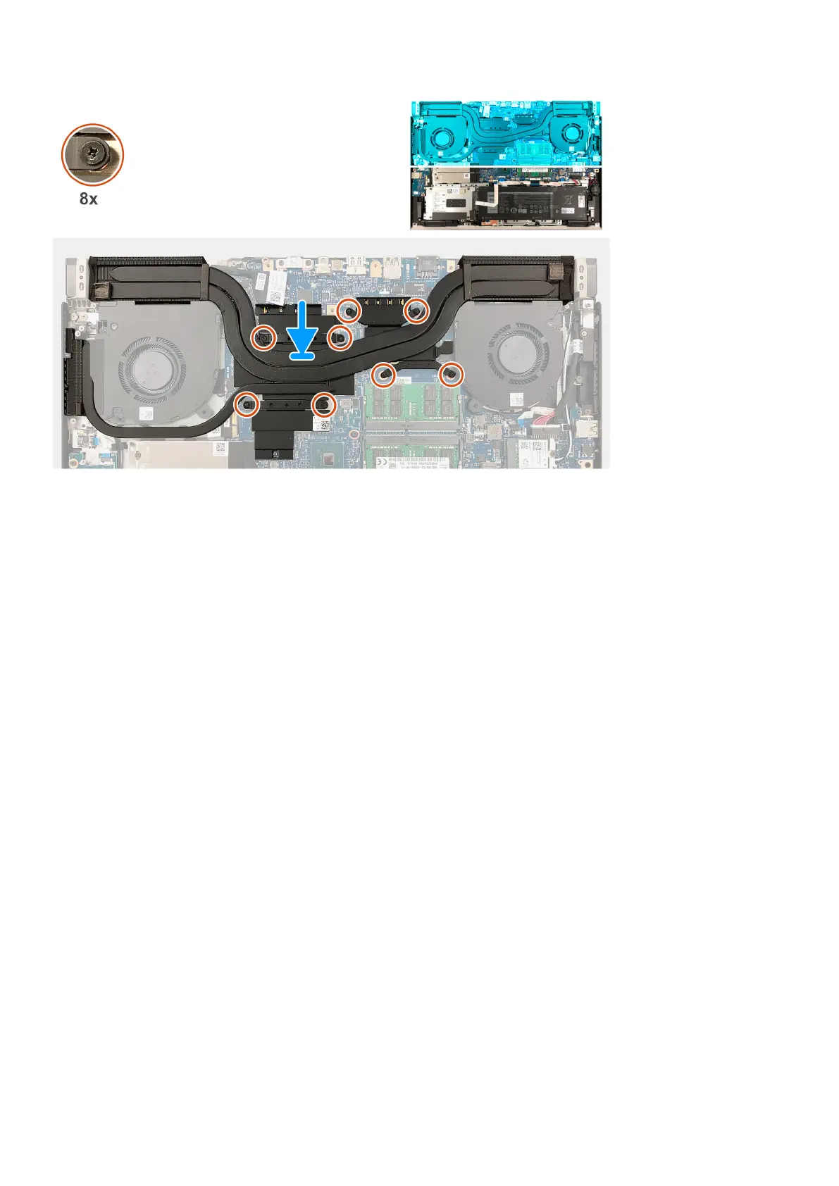 2. In sequential order (as indicated by the numbers on the heat sink), tighten the eight captive screws that secure the heat sink to the