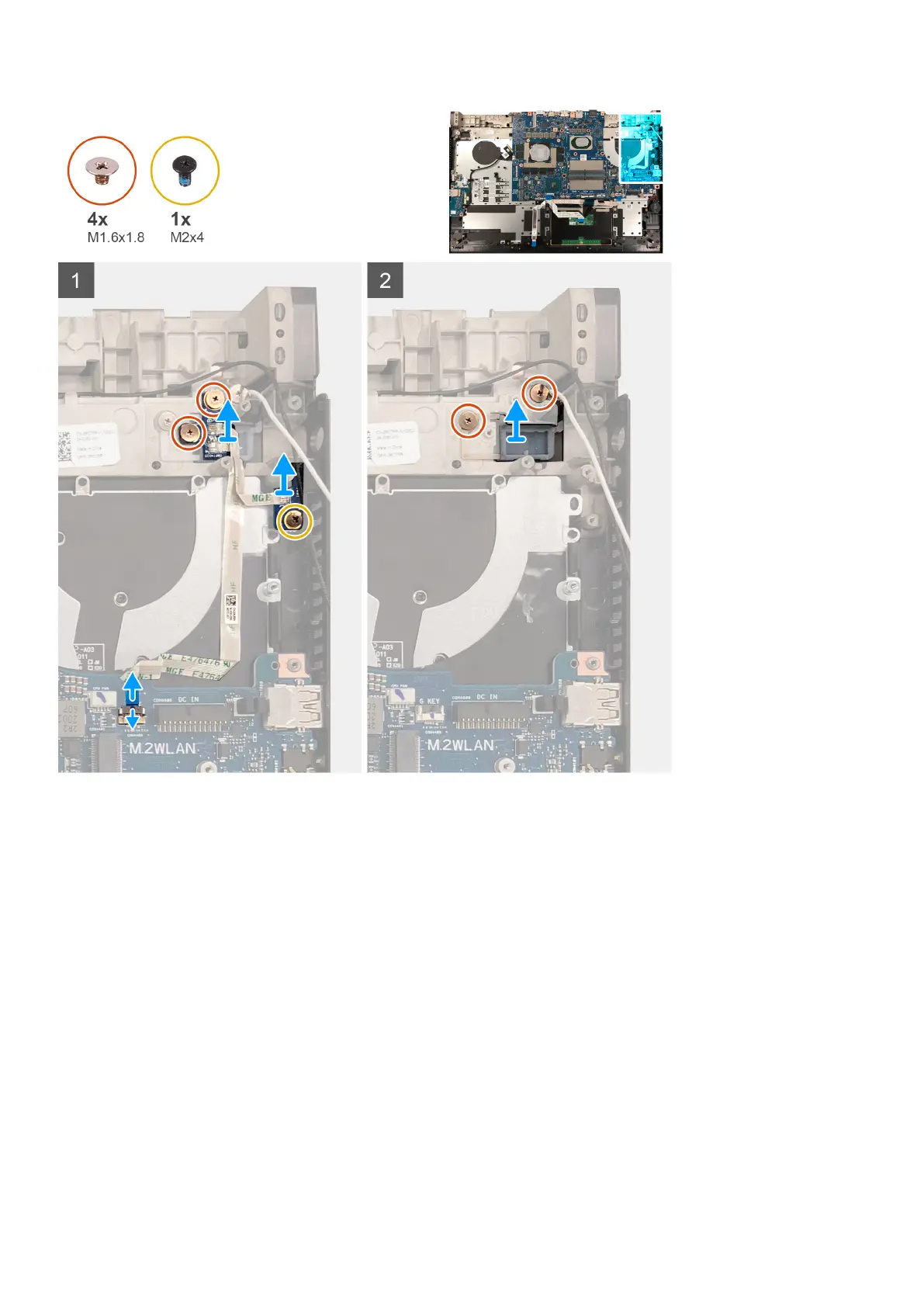1. Remove the two screws (M1.6x1.8) that secure the G-key board to the palm-rest and keyboard assembly.